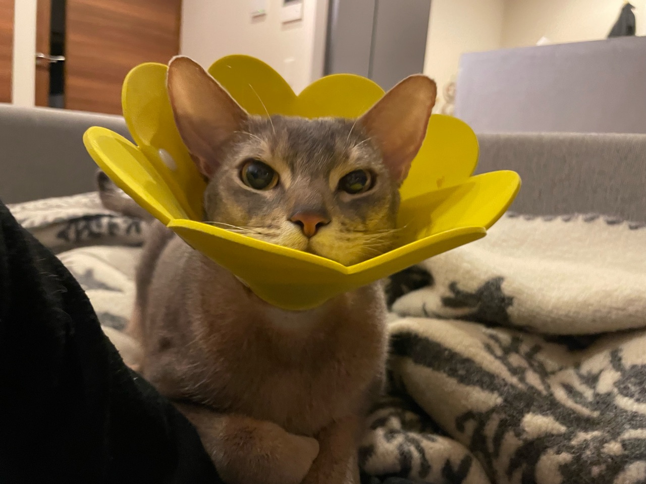 腰の痛みを良くするために、腰が伸びる姿勢を探そうとソファーにもたれかかった途端に、ぼくちんが駆け寄ってきた。