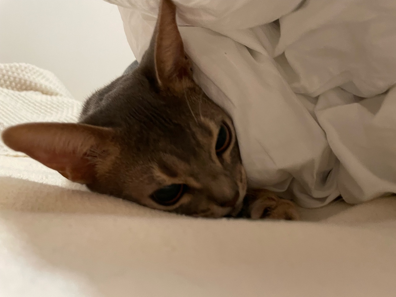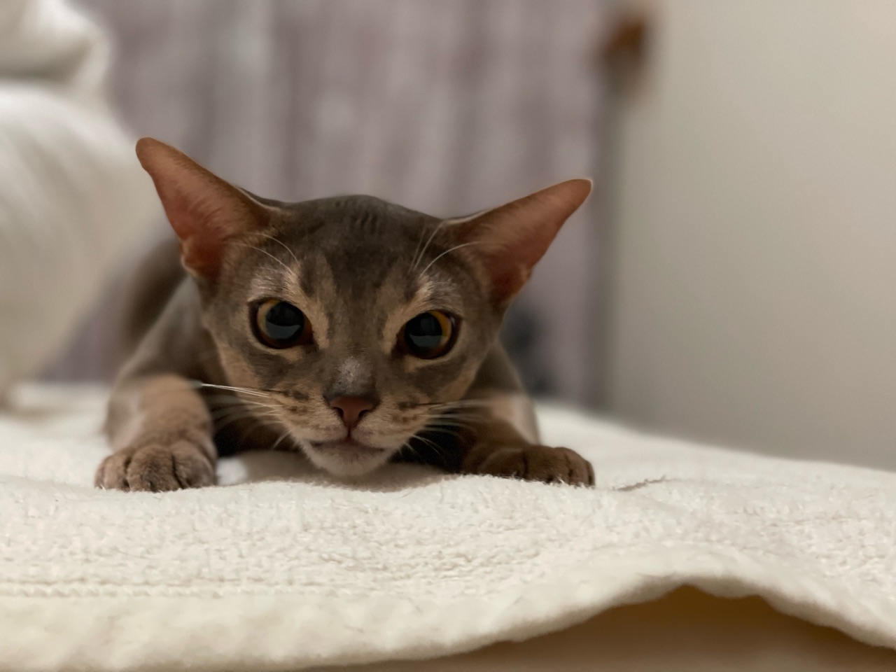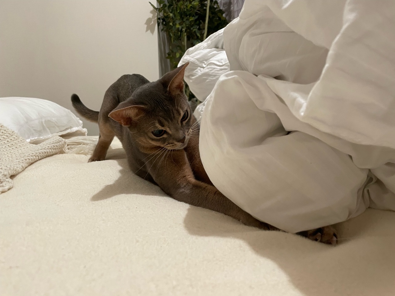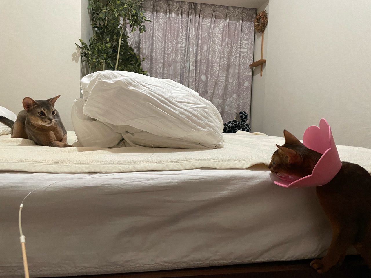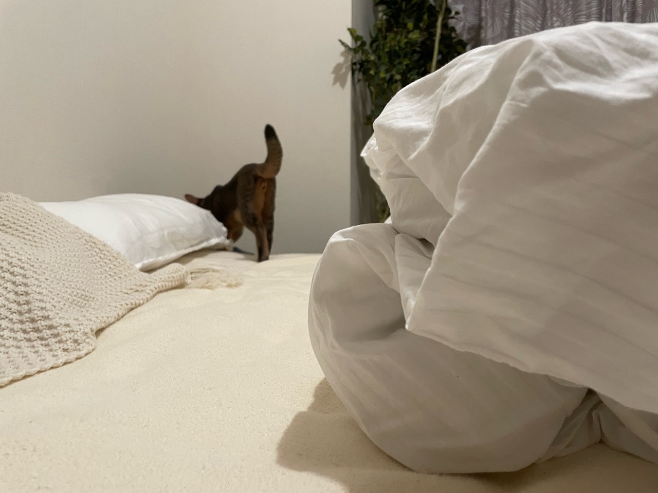 さて、そろそろ寝ようかなと寝室に行くと、期待に満ちた猫がいる。