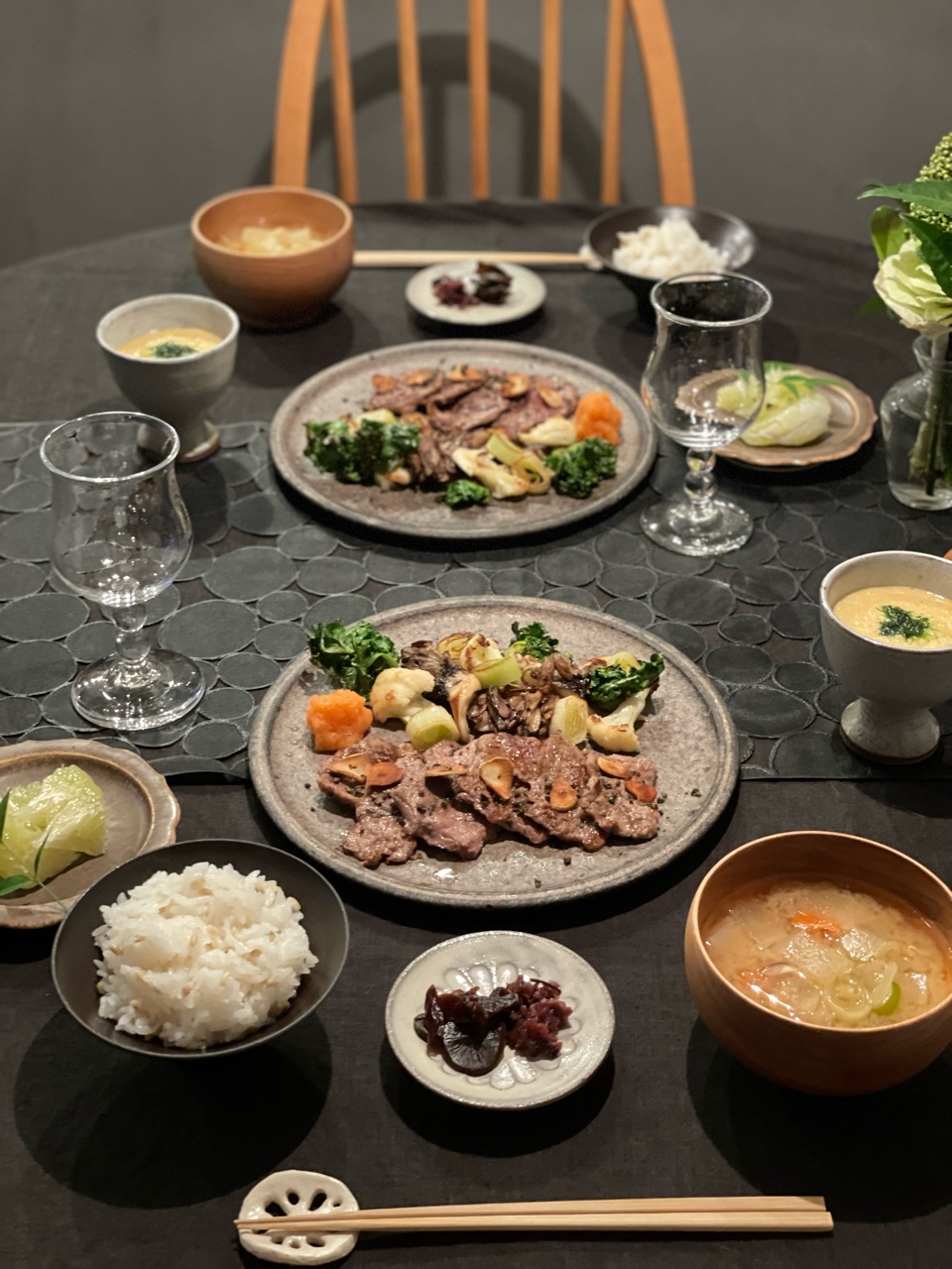 昨日は、冷凍ストックのお肉を焼いて焼き肉定食にしました。