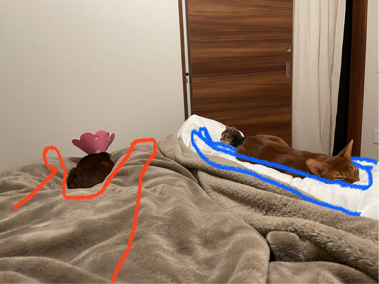 そんなわけで、最近のベッドは猫渋滞です。