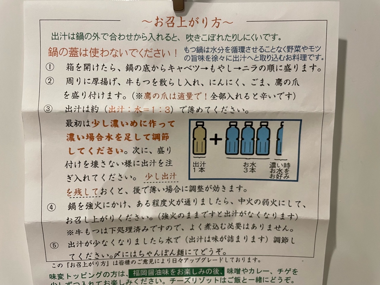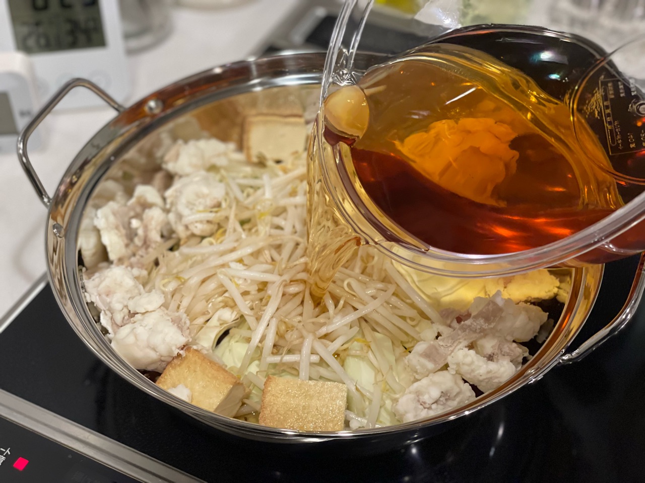 いつもそうしていたけど、もつ鍋の作り方の説明をみて納得でした。