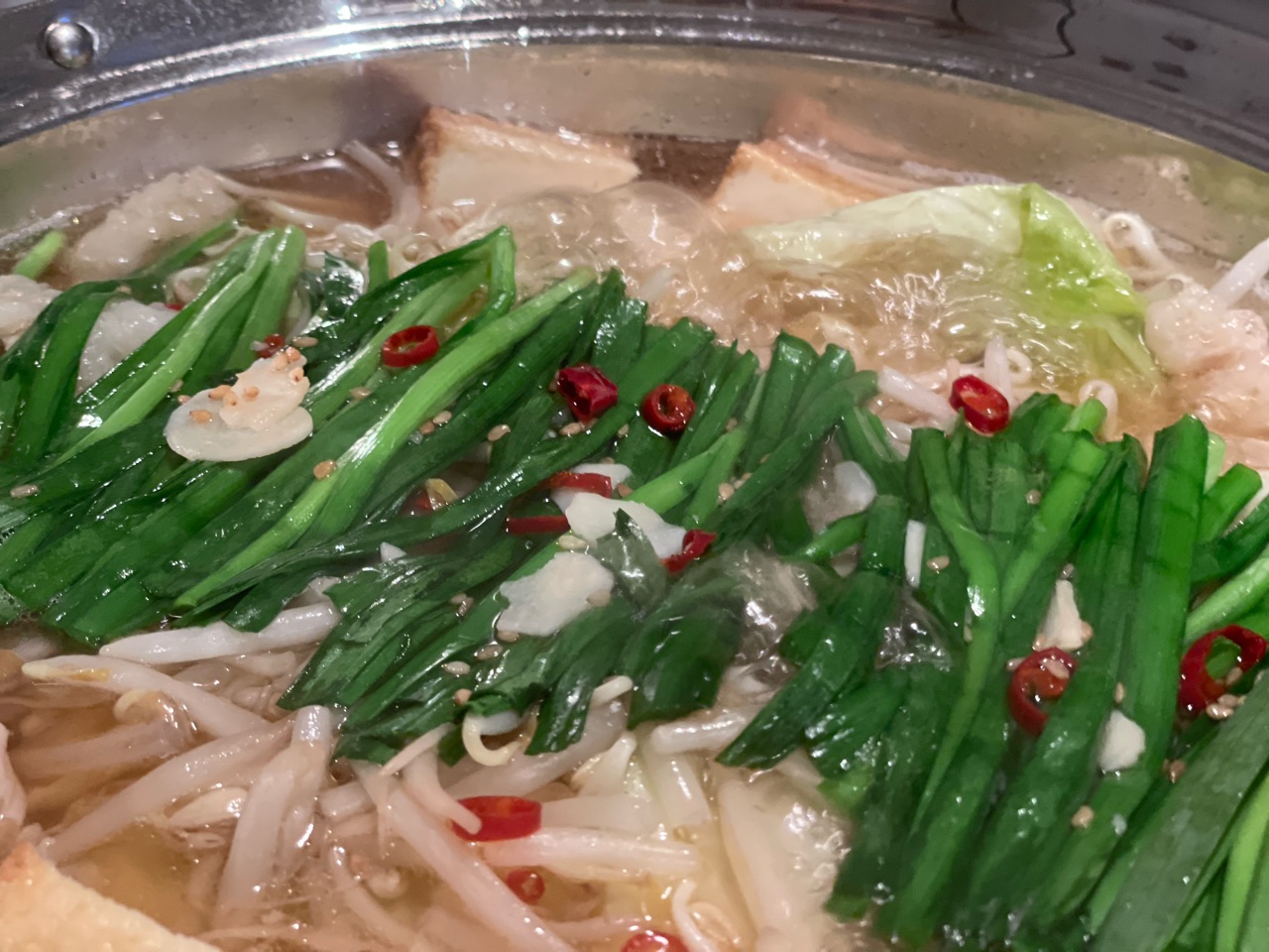 そうこうしているうちに、もつ鍋のニラに火が通って食べごろになってきました