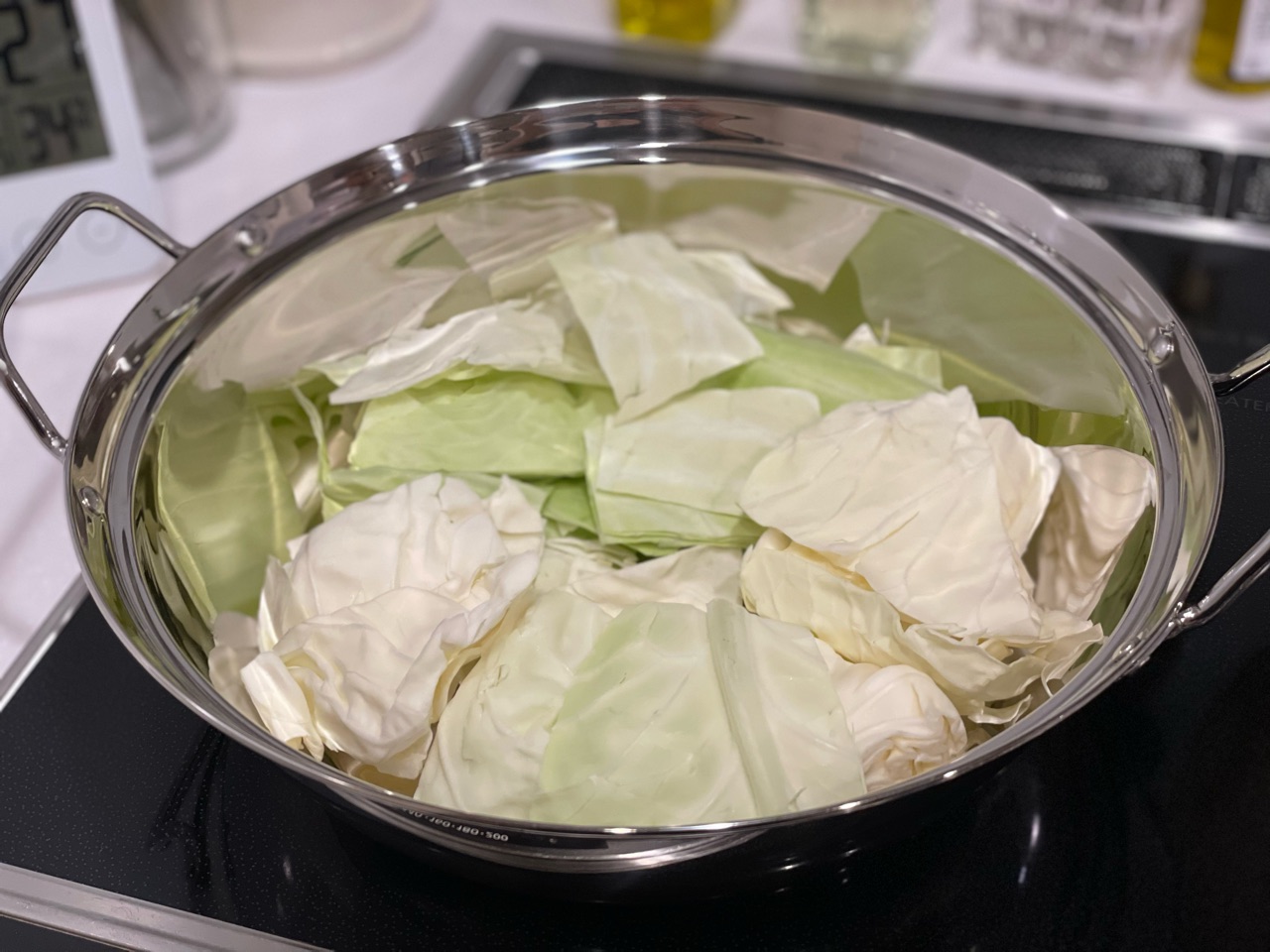 キャベツを袋から出して鍋底に並べて(簡単♪)