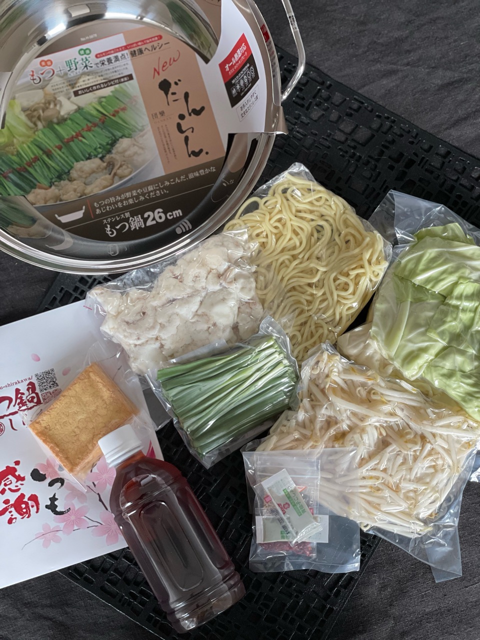 今回お試しさせていただいたのは、こちらの鍋付き、野菜付きのもつ鍋セット2人前です。