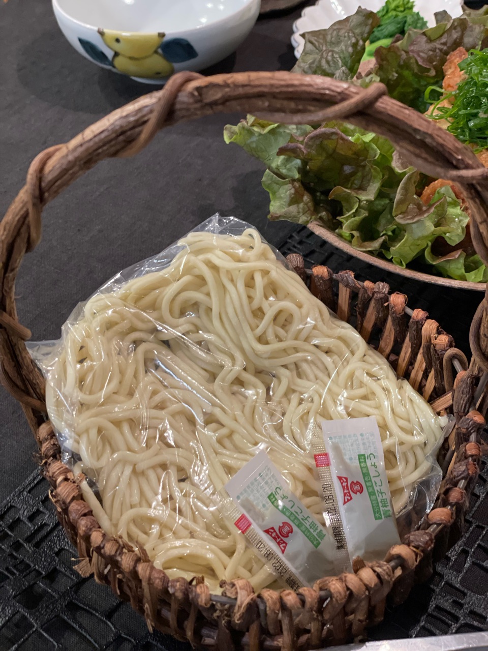 〆のちゃんぽん麺と、味変用の柚子胡椒も入ってます。