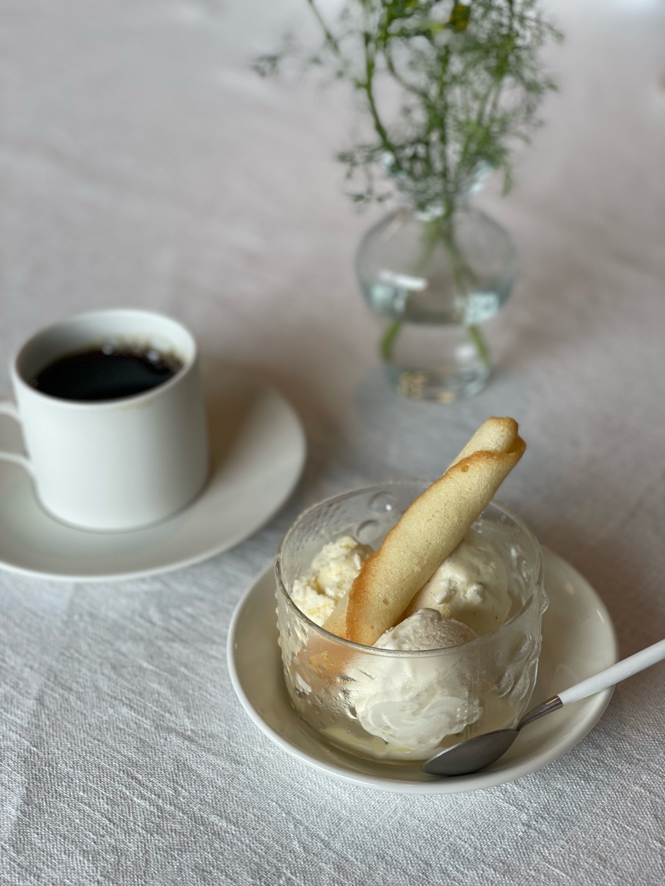 食後のコーヒーとアイスクリーム、シガレット添え。