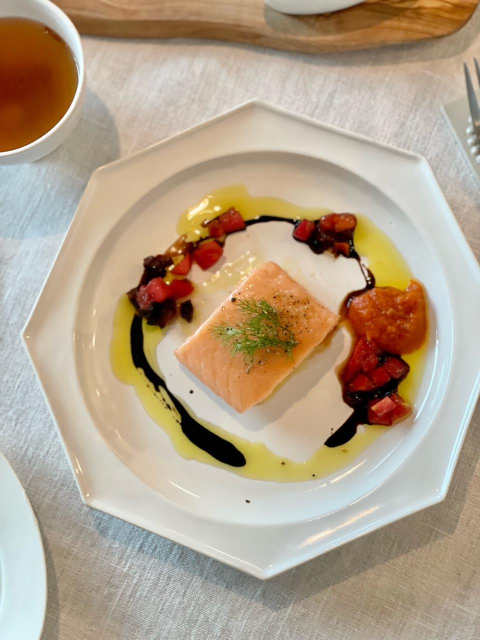 そこで、前日の夜に冷蔵庫と睨めっこして決めたのが、サーモンのミキュイ。