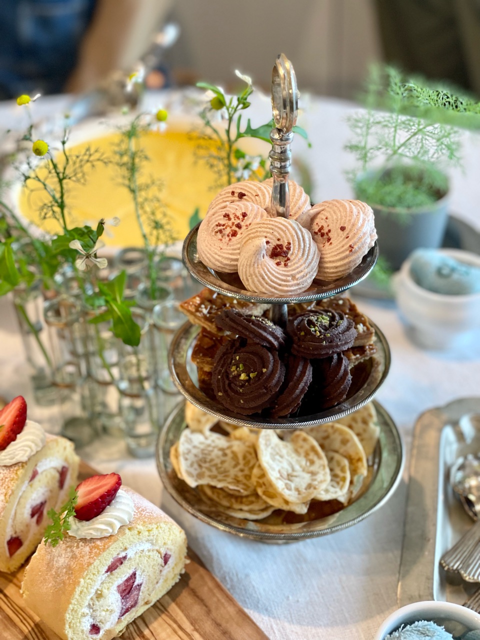いちごのメレンゲ、チョコクッキー、フロランタン、1番下はりょこさんにいただいたテンペチップス。