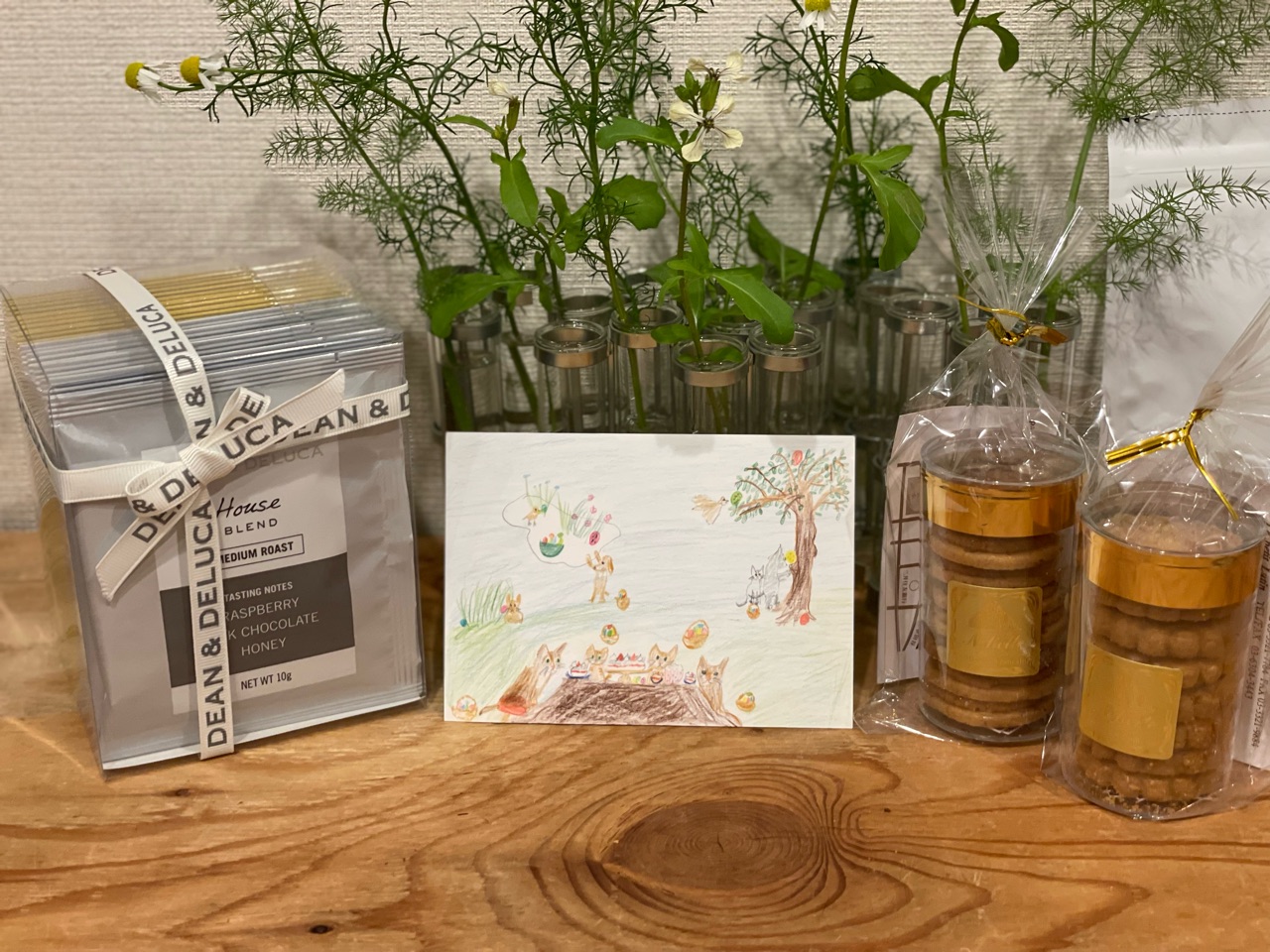 お土産に、コーヒーやノリエットのお菓子、Nちゃんのイラストをいただきました✨
