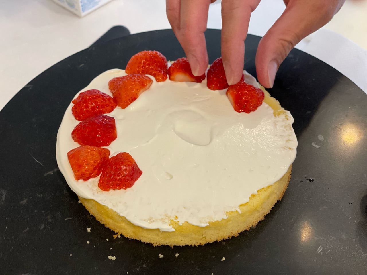 生クリームといちごを挟んで