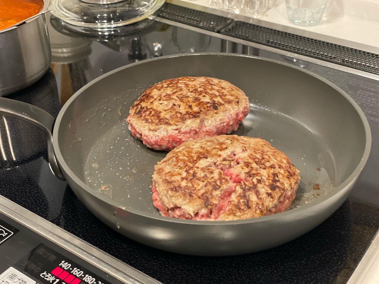 今、ハンバーグ焼いてます✨