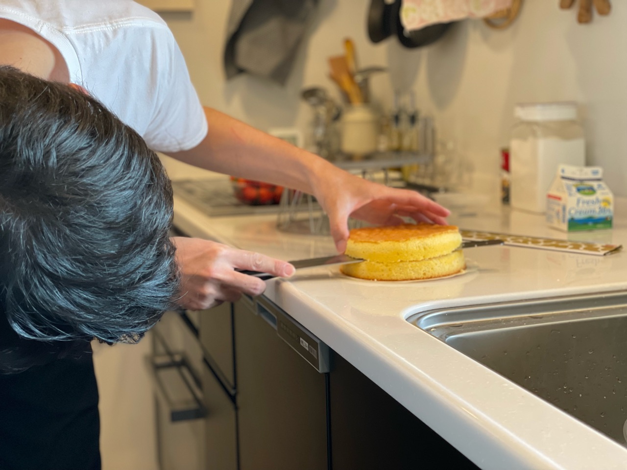 昨日の夜に仕込んでくれたスポンジケーキは…