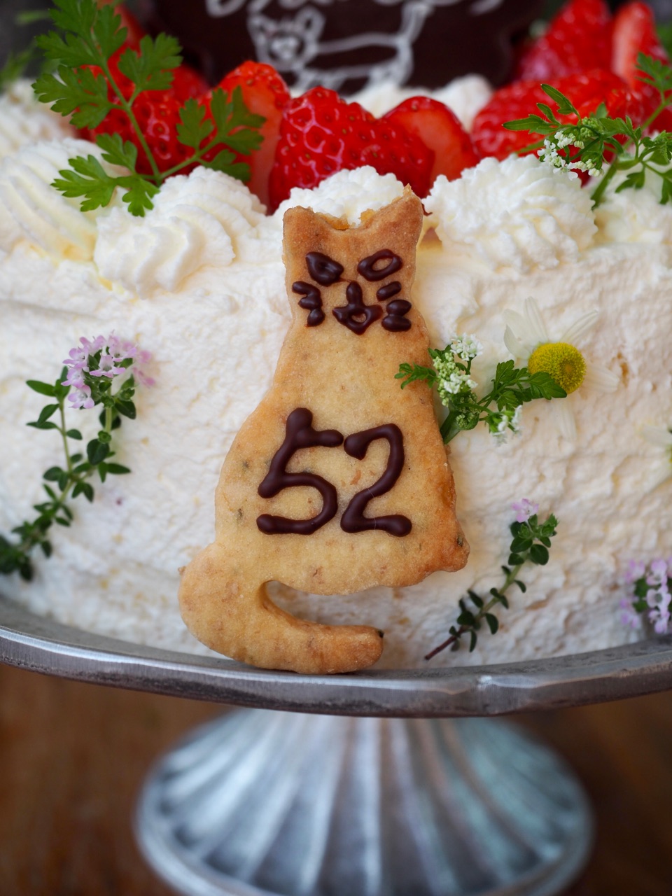 「52」ちゃいは、猫のクッキーにチョコで描いてくれました。