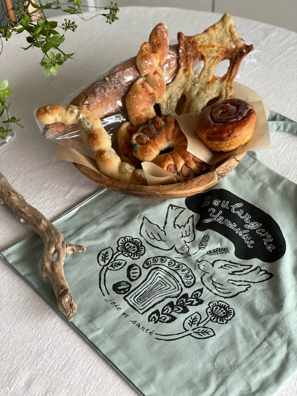 買ってきたパンたちと、お店のエコバッグ。