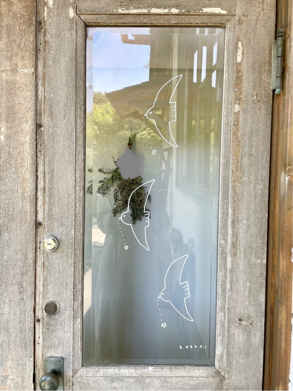 ヤマシタさんのガラス戸にも、かわいいイラストが
