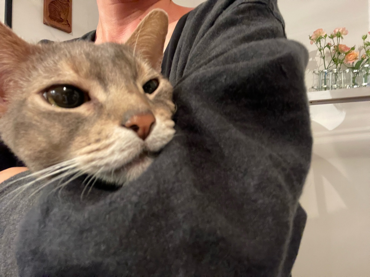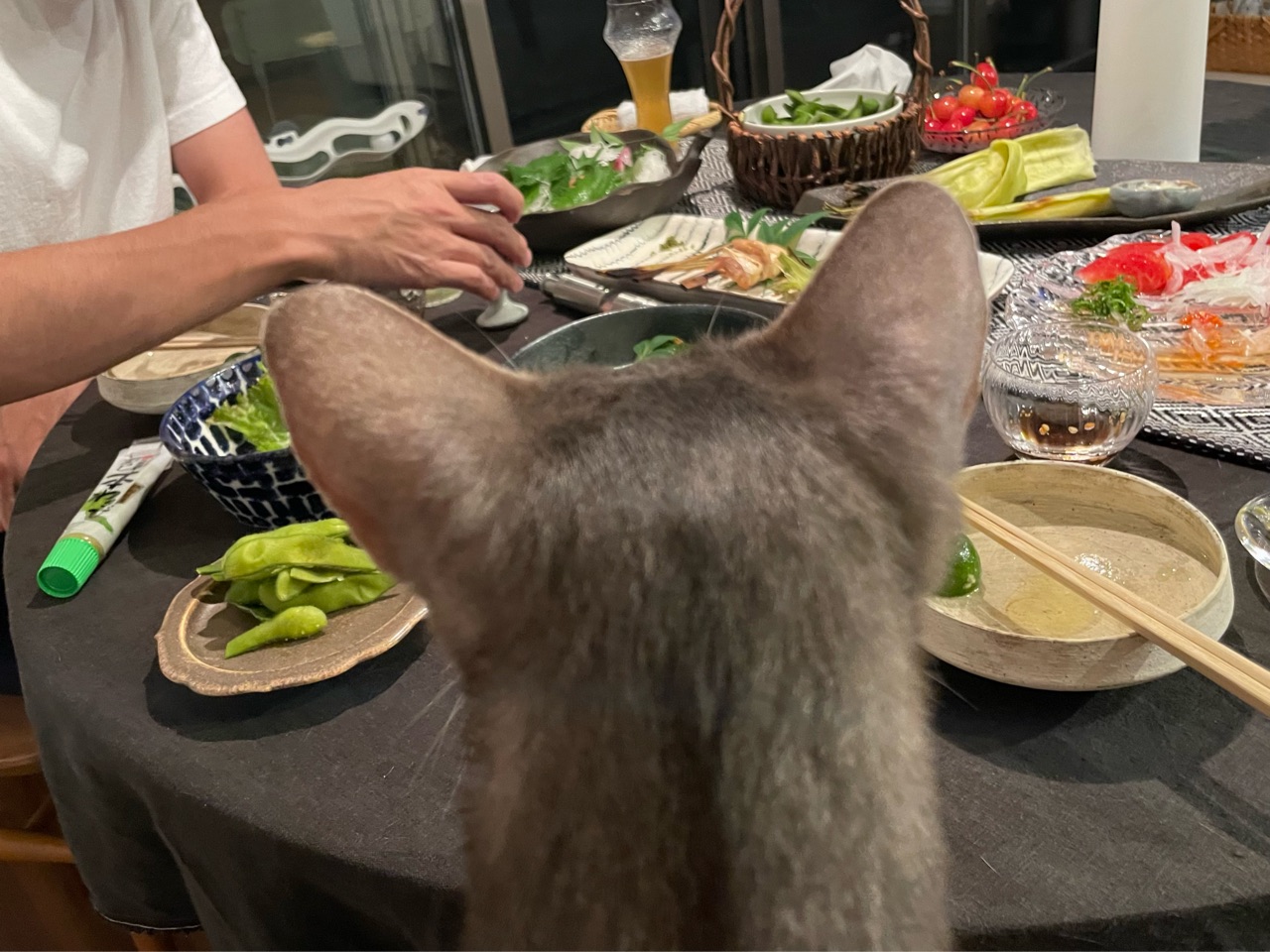 しかし、抱っこマンはなかなか降りないので、しばらくこのまま、猫カフェならぬねこ居酒屋スタイルでした(*´ω`*)