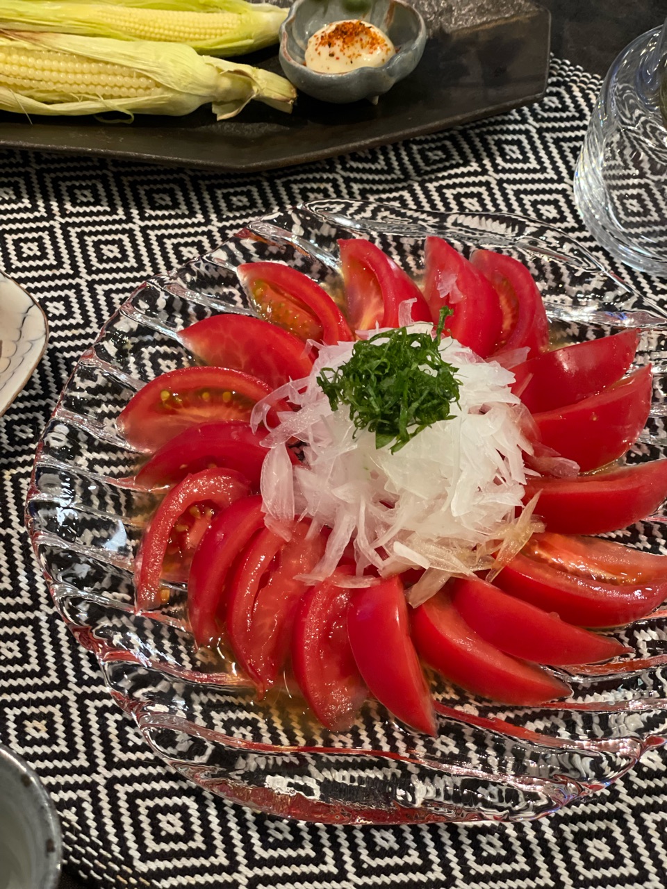 後頭部を見ながら、冷やしトマト。