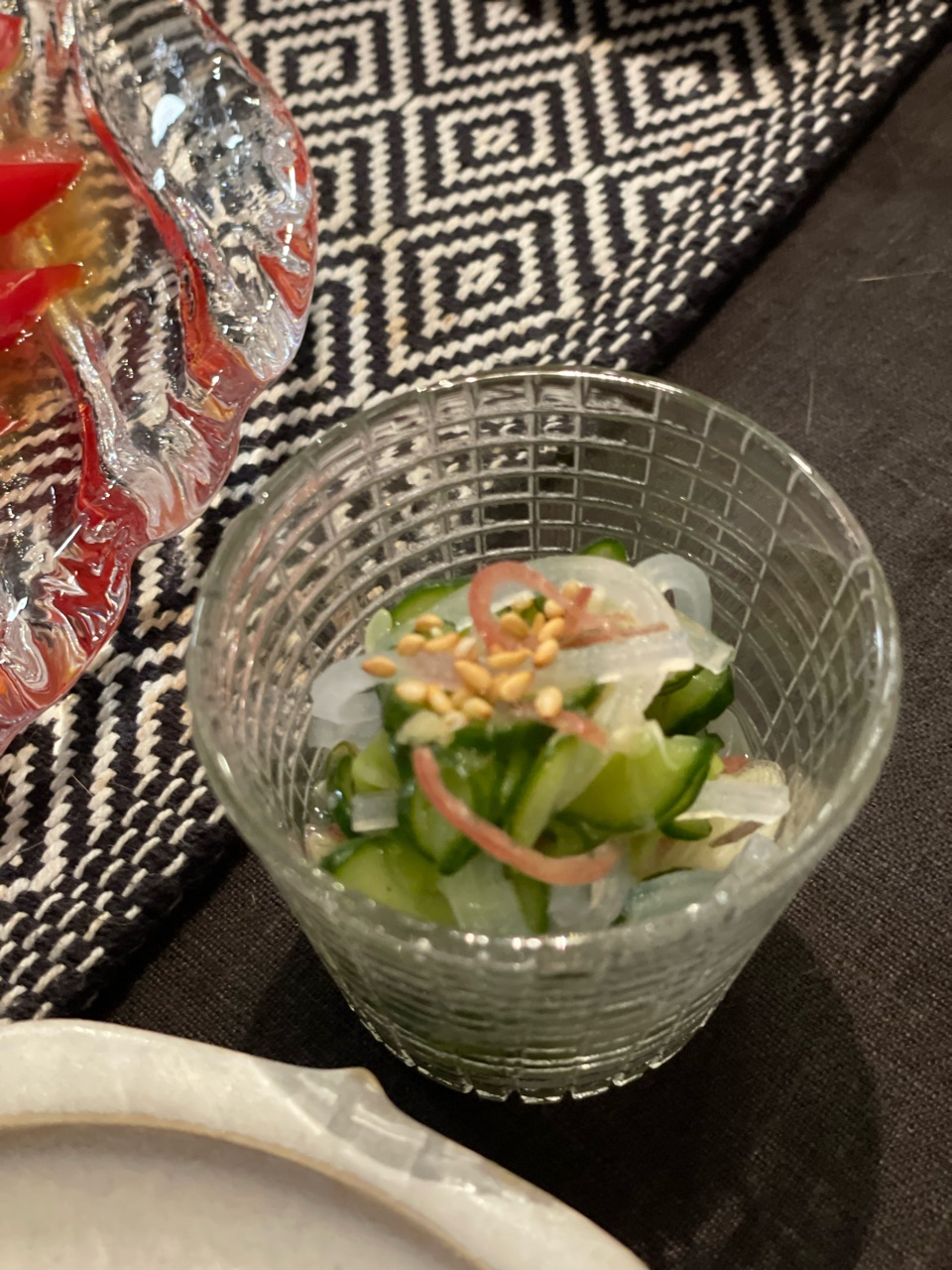 きゅうりと茗荷とマロニーの酢の物