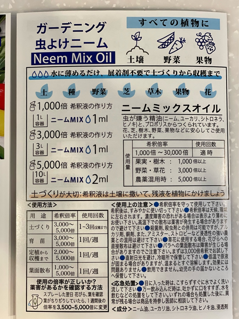 虫除けニームオイルは、プロの農家さんと共同開発したのだそう。