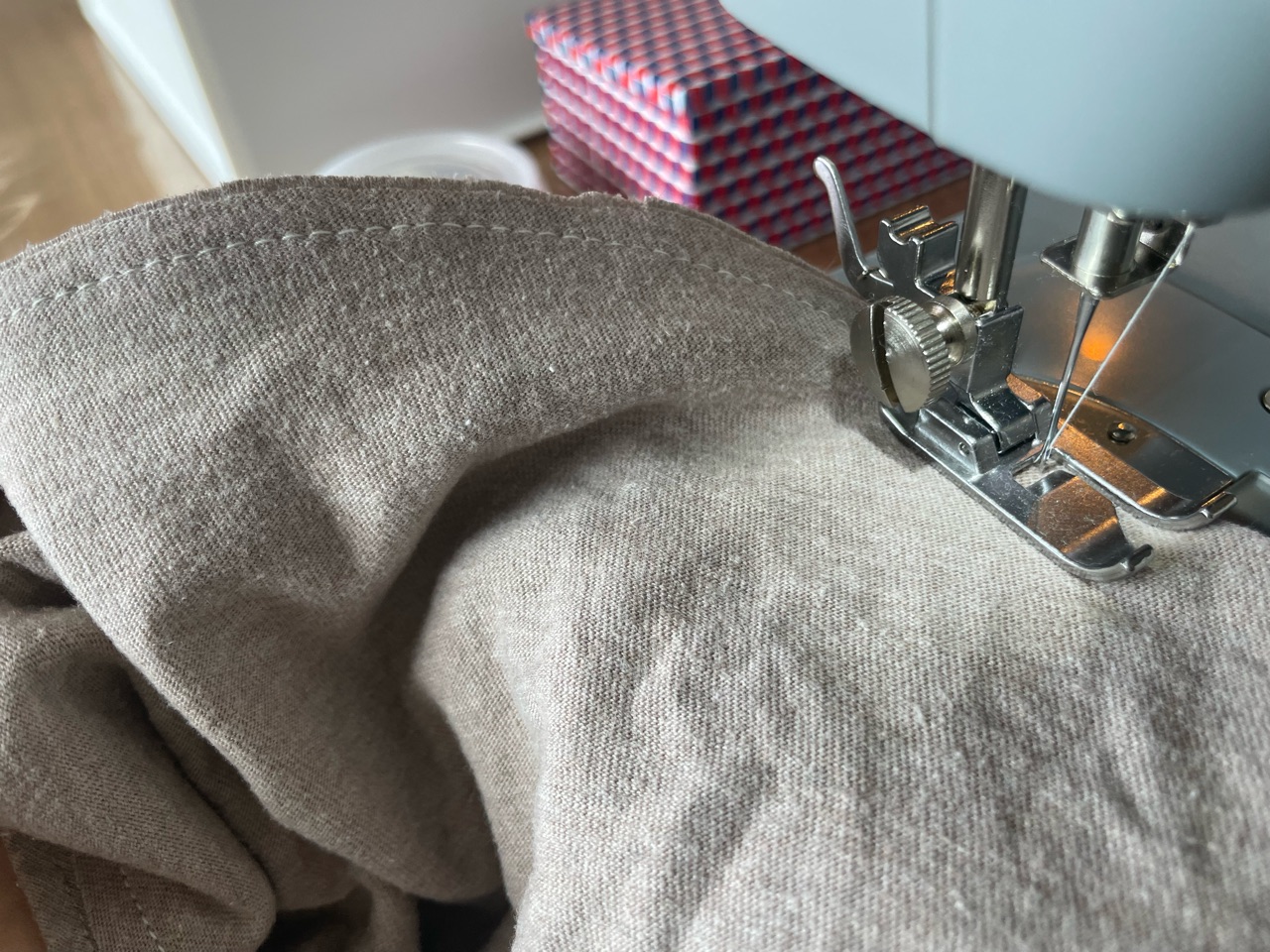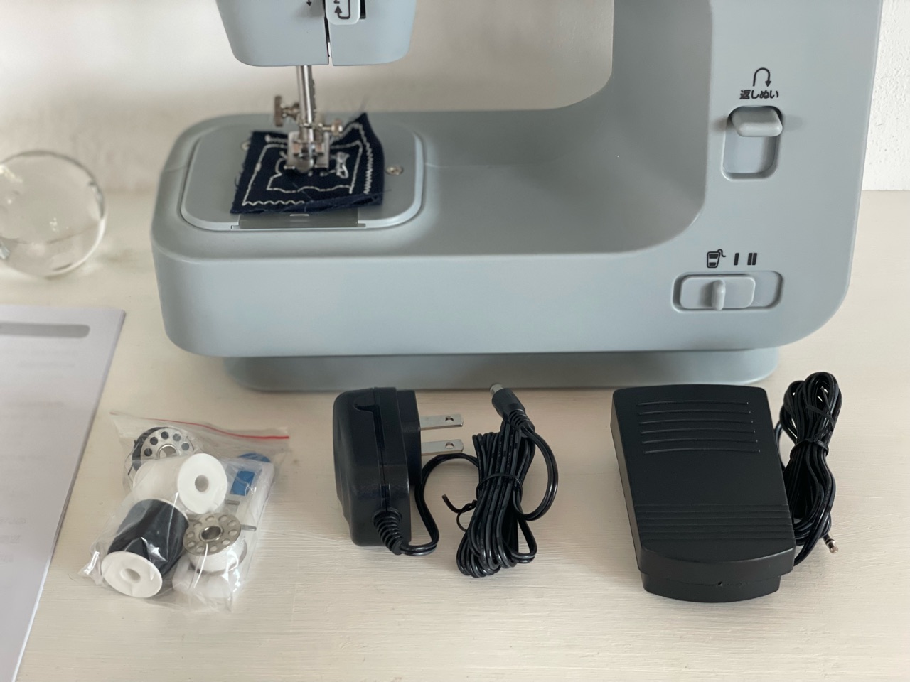 開封時に、糸が付いていて、テスト布のようなものも付いていたので、そのまま縫ってみました。