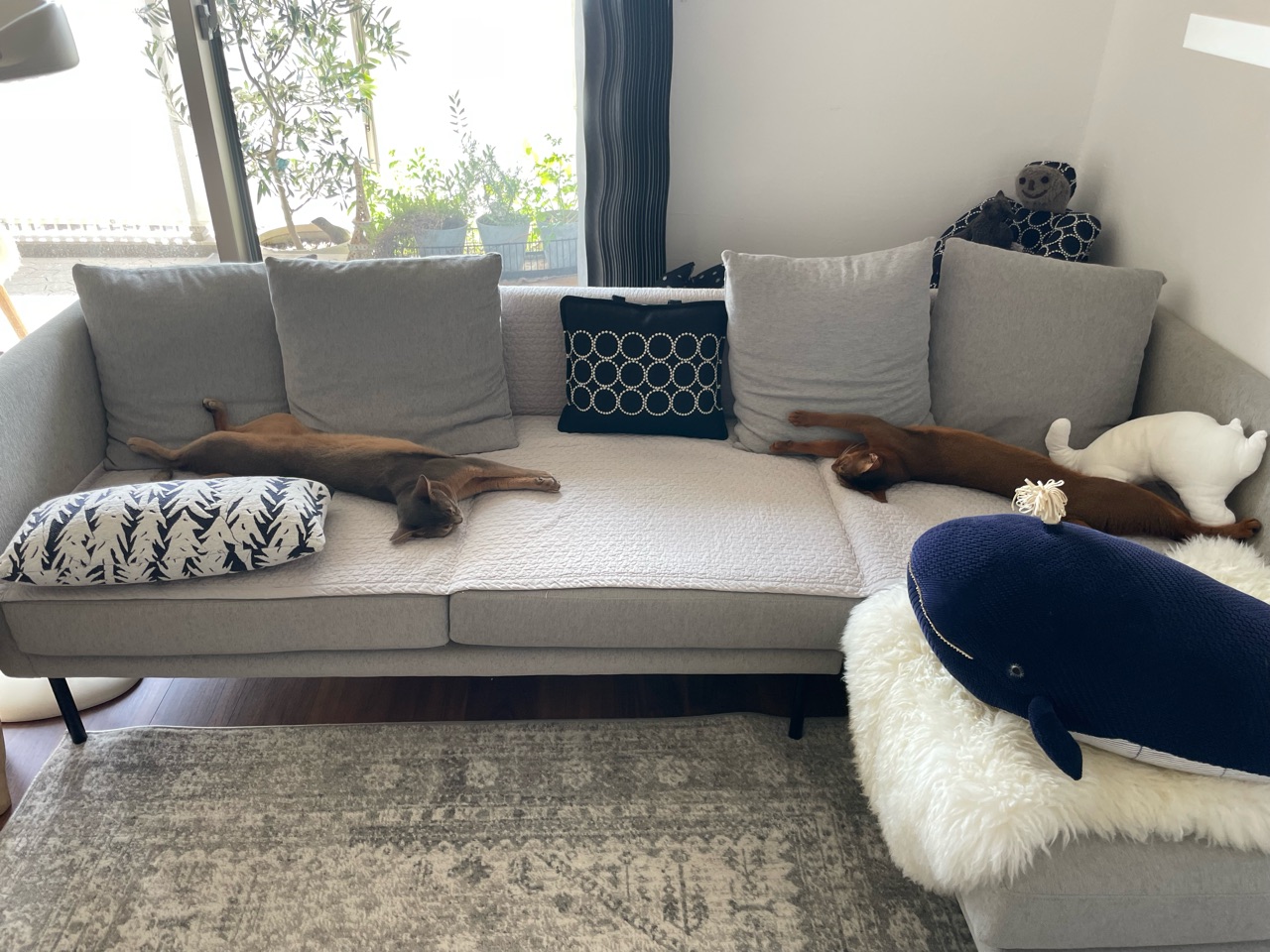 2022年09月14日 ちびっ子さんたち、揃って伸びてる ソファーは相変わらず猫たちに占領されがち。大きめのソファーにしたのだけど、正解だったかも♪うちの猫たち、寝る時長いんです。特に、との、りす、わかは、寝ると伸びます。りすも伸びてる無防備なお顔で(*´ω`*)お腹丸出しで(๑¯◡¯๑)かわいい(*´ω`*)わか坊も伸びてる(*´ω`*)ゆるゆるの顔で(*´ω`*)あんよ放り出して(๑¯◡¯๑)あ、あんよ伸びたー🤣ゆるゆるだなぁ(*´ω`*)ソファーの両端から、ニューっと伸びたりすとわか坊。人間の座る場所は…今日も無しと。 「├ りす子」カテゴリの最新記事 < 前の記事次の記事 > コメント コメント一覧 (2) 1. origanum 2022年09月14日 22:36 あんよとかはわか坊🐳って当てずっぽでわかりますが、ゆるゆる寝顔はとのお兄ちゃん💕と見分けがつかーん 0 jolijolidayo がしました 2. ビビアン 2022年09月15日 08:03 両側からすごい伸びかた🤣ソファの手前端っこに落ちそうになりながらご一緒しちゃダメですか😁?! 実際猫さんと暮らしたことないけど、たしかにここまで伸び伸びに寝てる姿、なかなか見ないかもですね😂健康に良さそう(笑)🎵 0 jolijolidayo がしました コメントフォーム 名前 コメント 記事の評価 リセット リセット 顔 星 情報を記憶 コメントを投稿する
