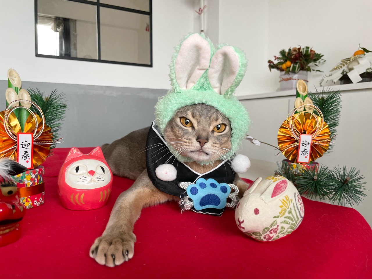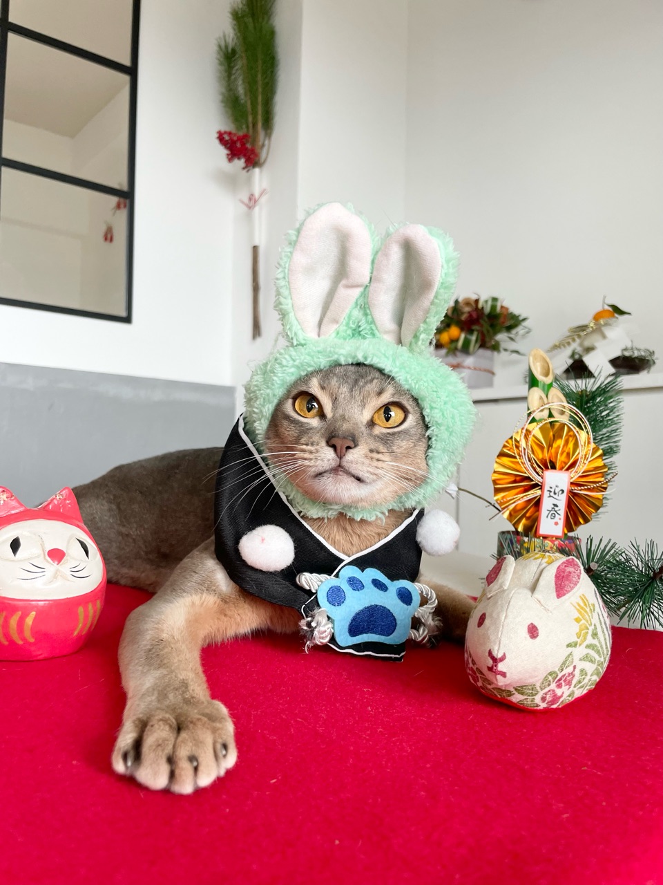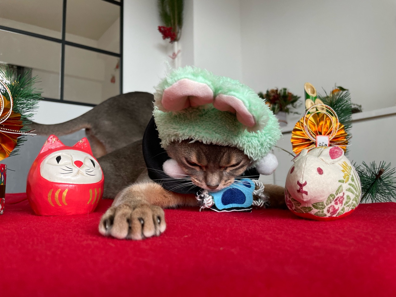 大晦日のふぐの食卓で自耳のとのピョン🐰が超可愛くてお気に入りですが、やっぱパッチリおめかしのキラキラのみんなゃ💕💖🎀🎄待ち受けにさせていただきますー٩( ᐛ )و可愛い可愛いみんにゃ❤️