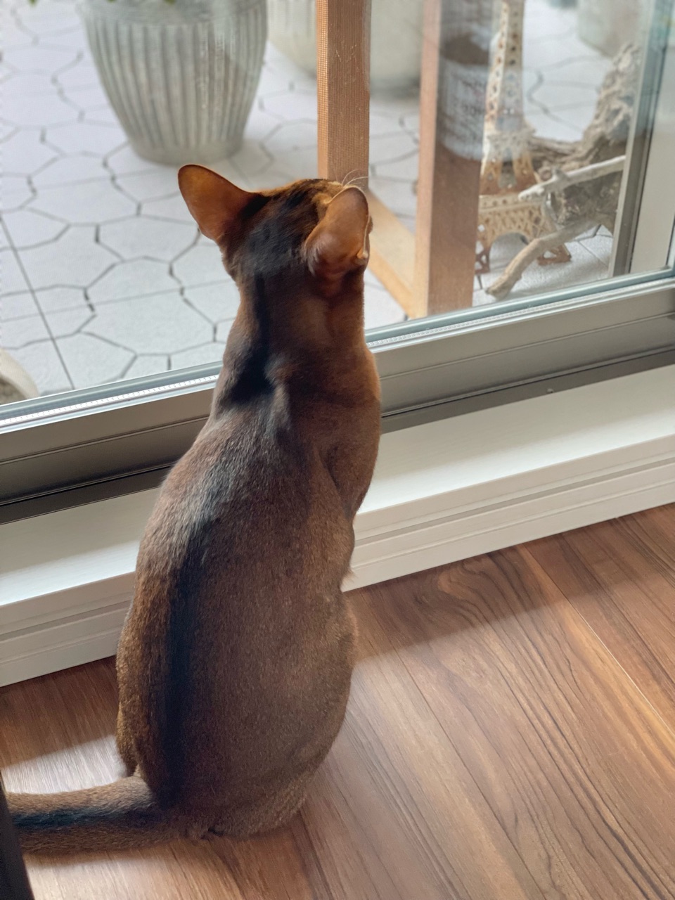 飛んで行った先のサイドボードの棚のところで襟をかけたら、あっさり撮影できた✨