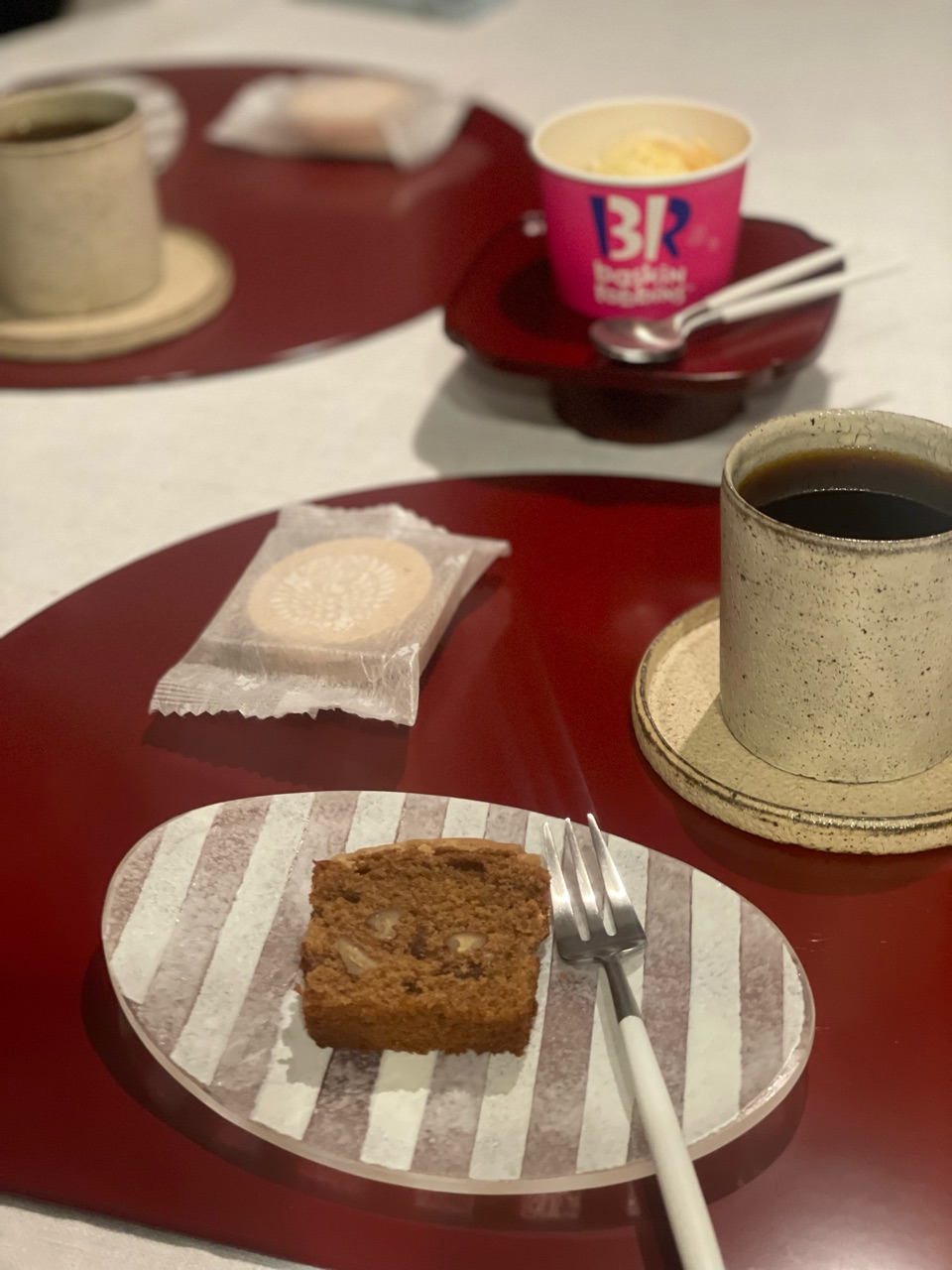 ロミユニさんのパウンドケーキと、サーティワンのキャラメルリボン✨