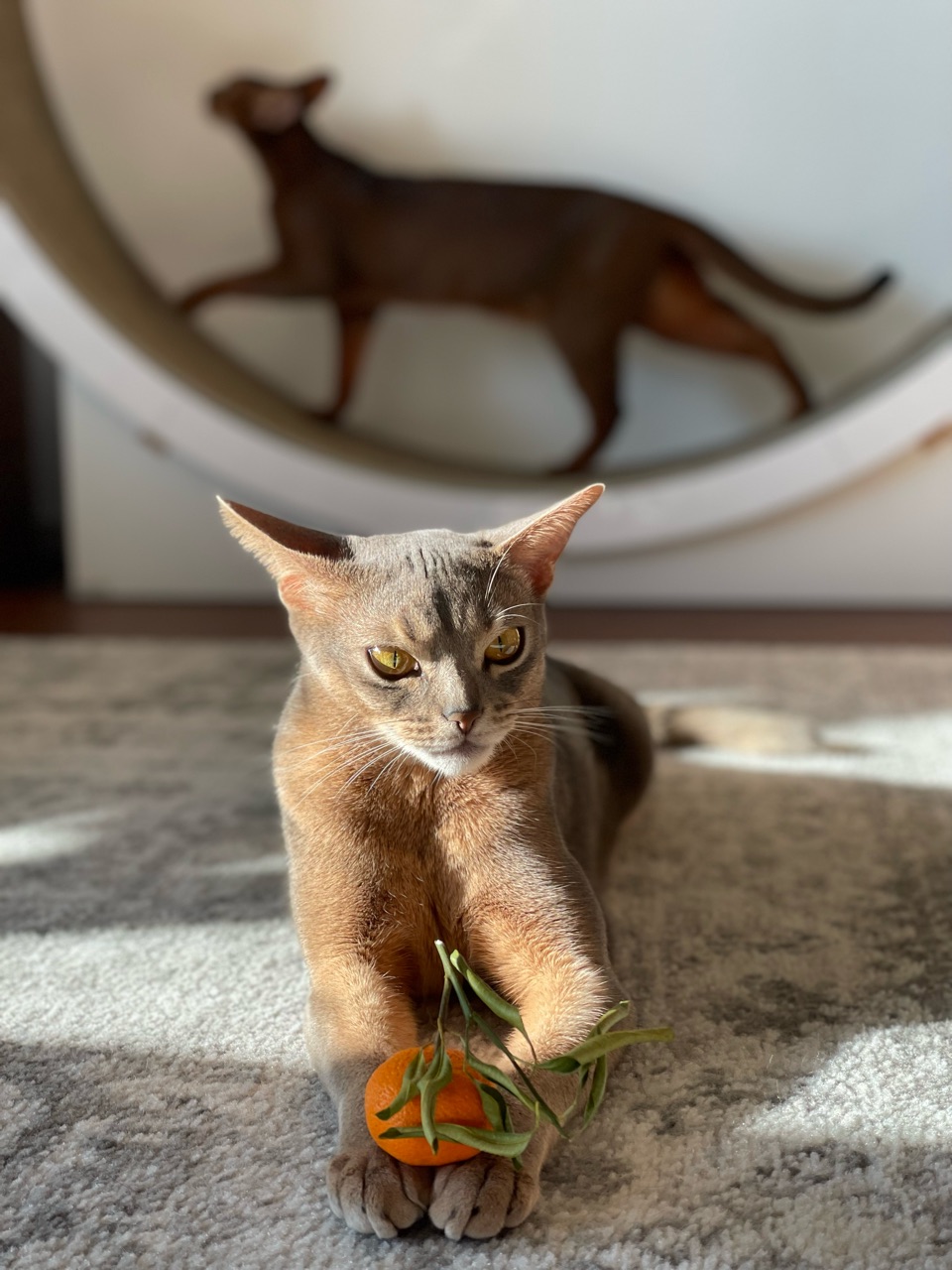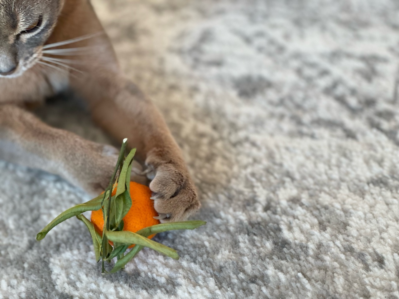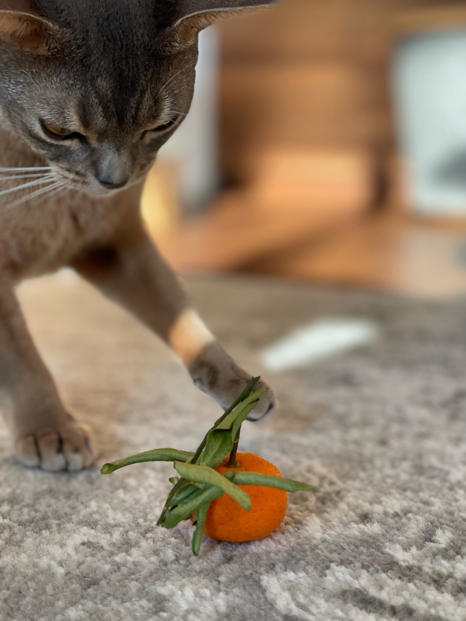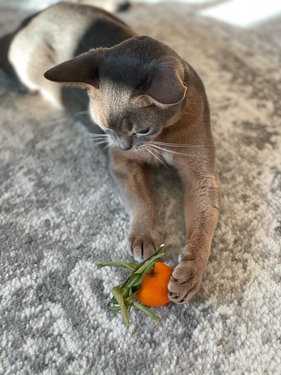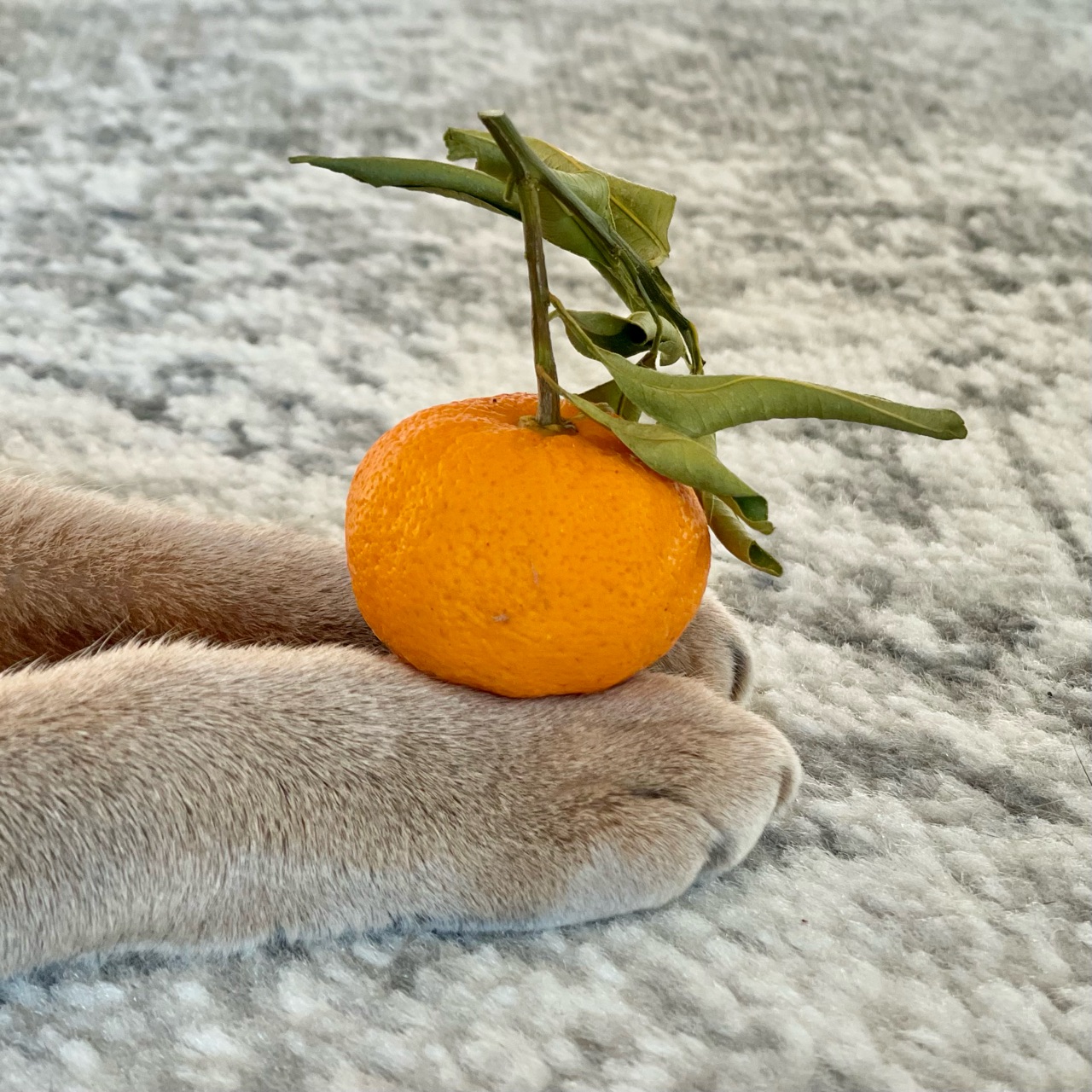 わか坊が両手を伸ばして寝そべってたから、橙置いてみたんです。