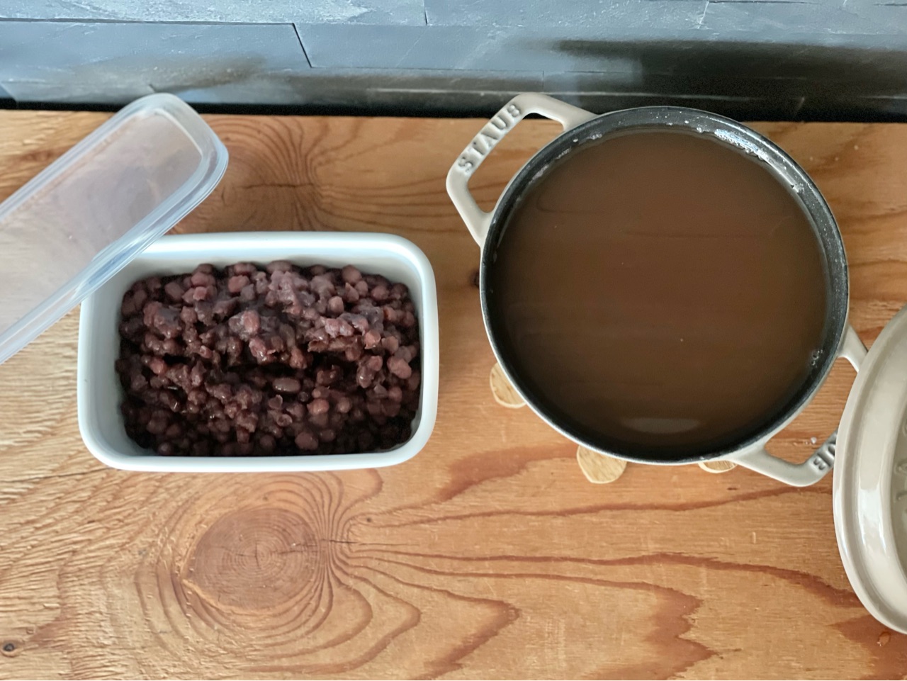 わが家では、関西風に汁気がある粒あんをぜんざいと言ってます。