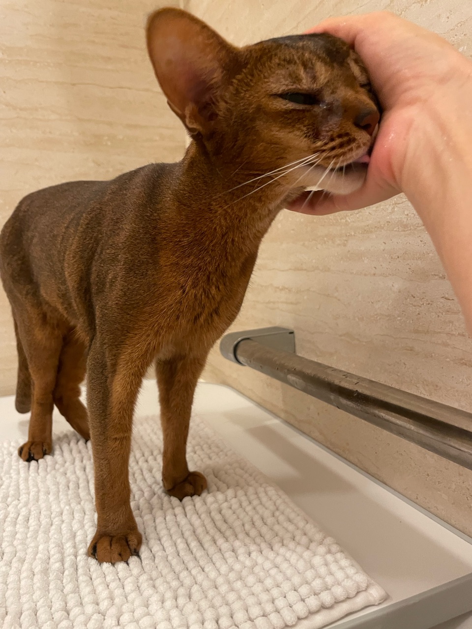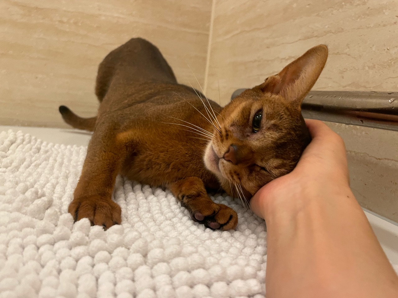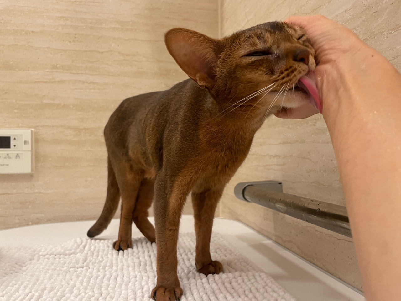 で、夜のお風呂タイムは狭い空間で見張れるので、一緒に入ってカラーを外してお手入れが出来る時間♪