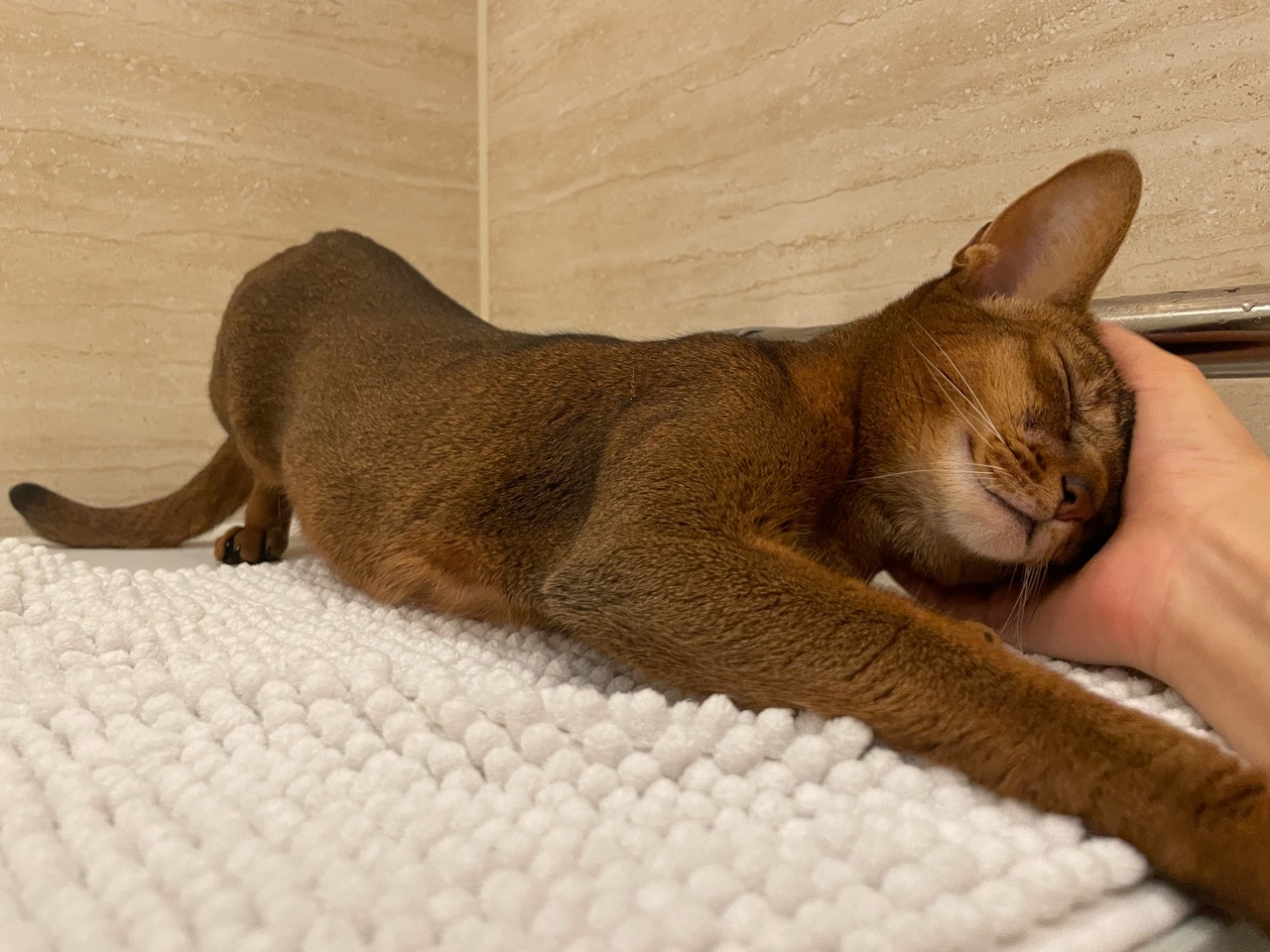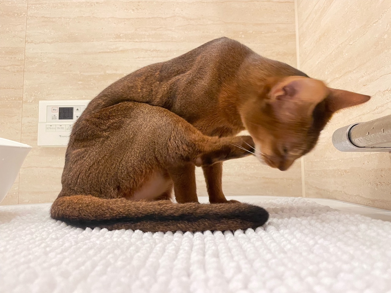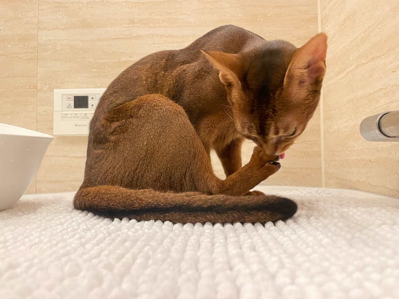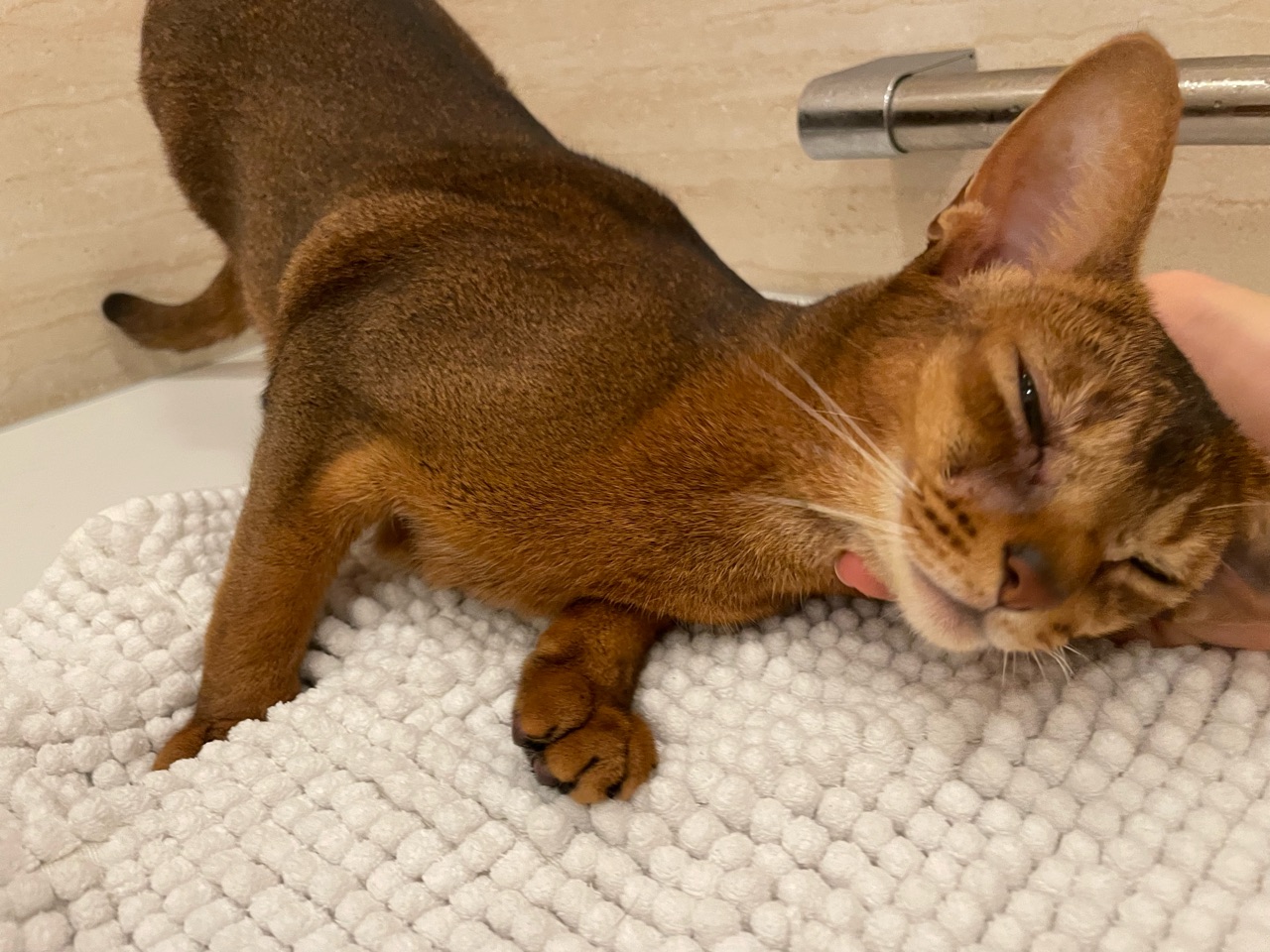で、夜のお風呂タイムは狭い空間で見張れるので、一緒に入ってカラーを外してお手入れが出来る時間♪