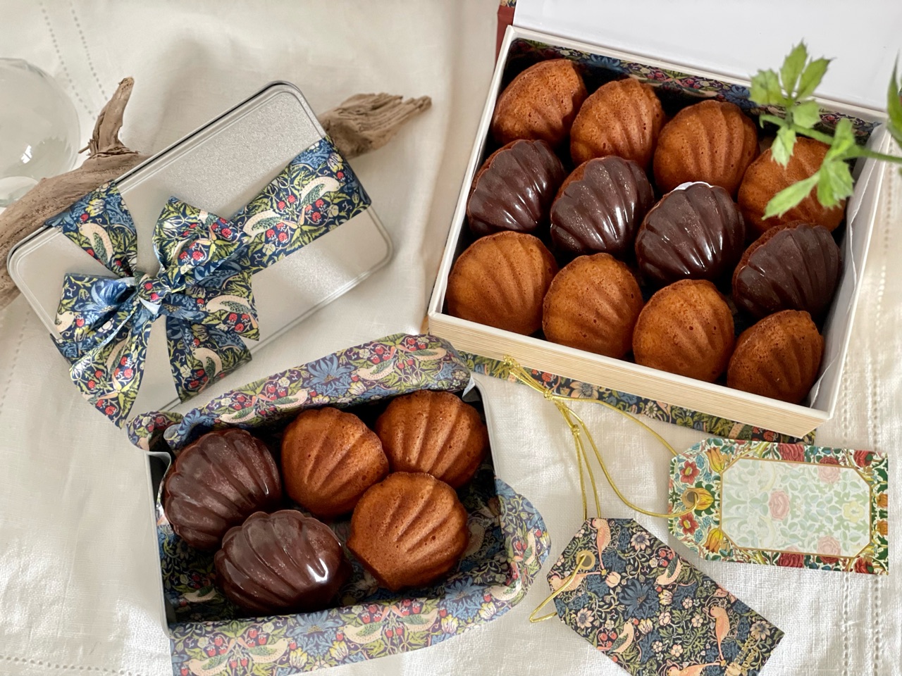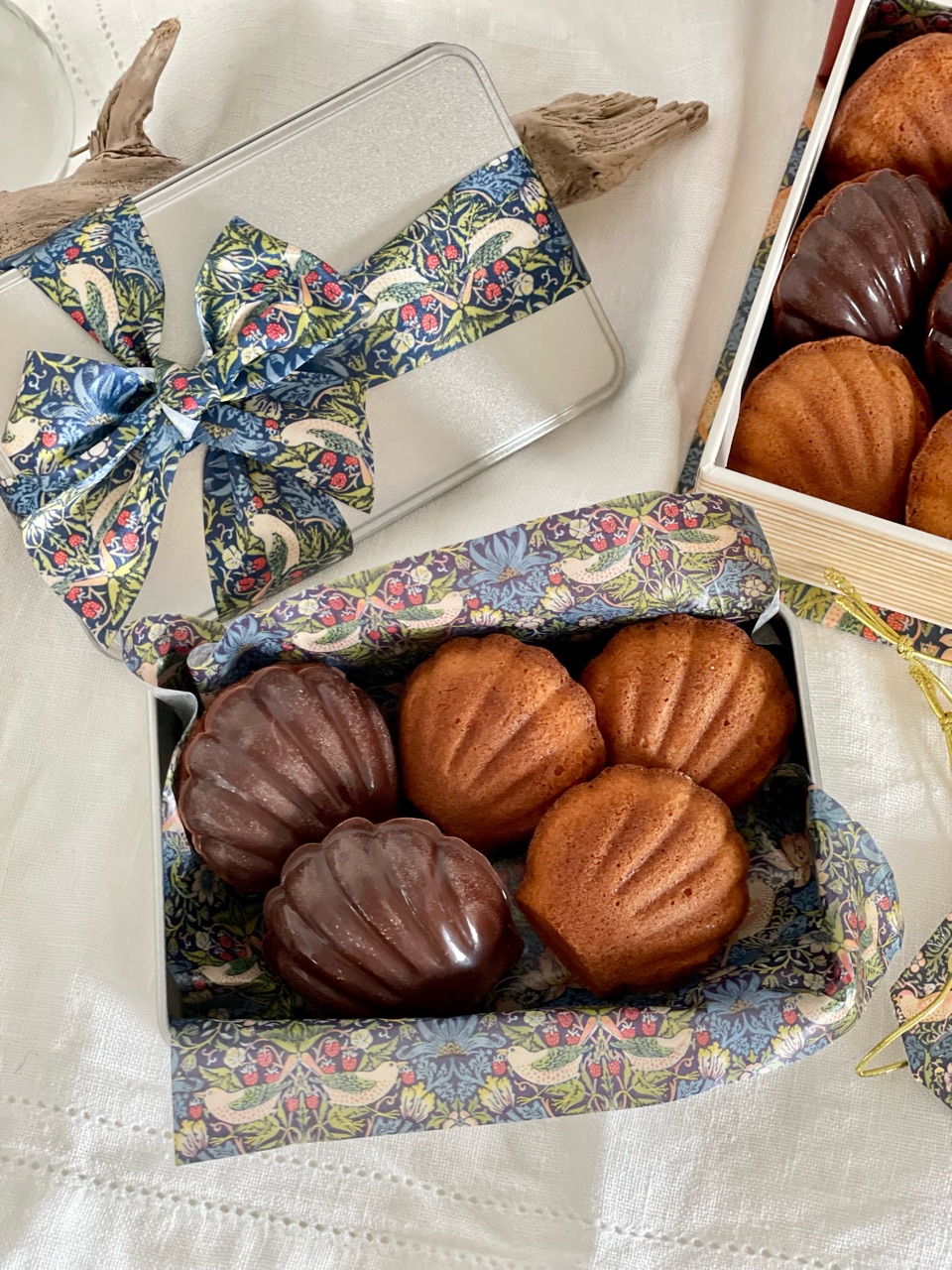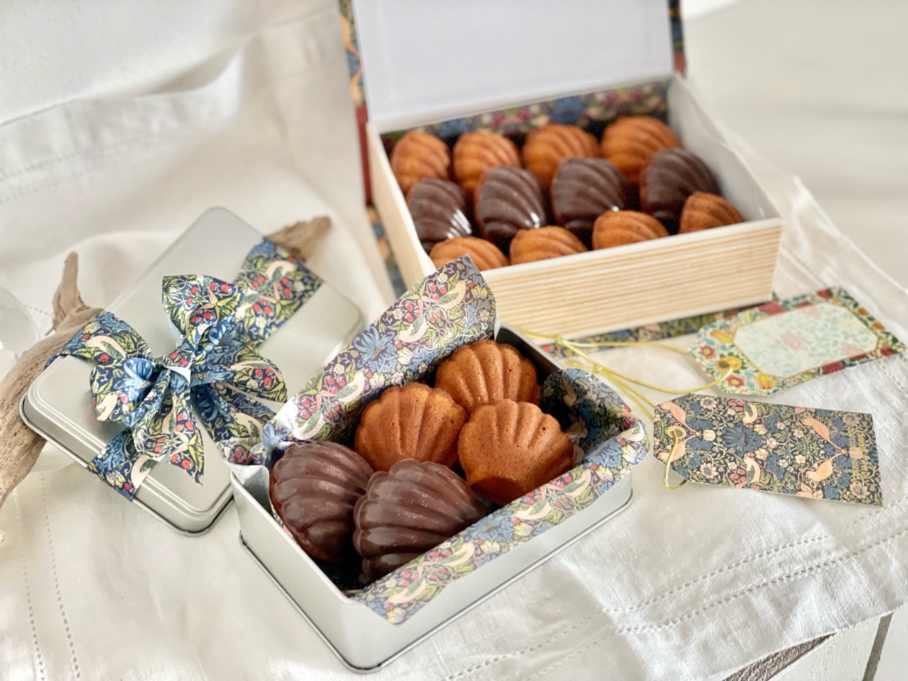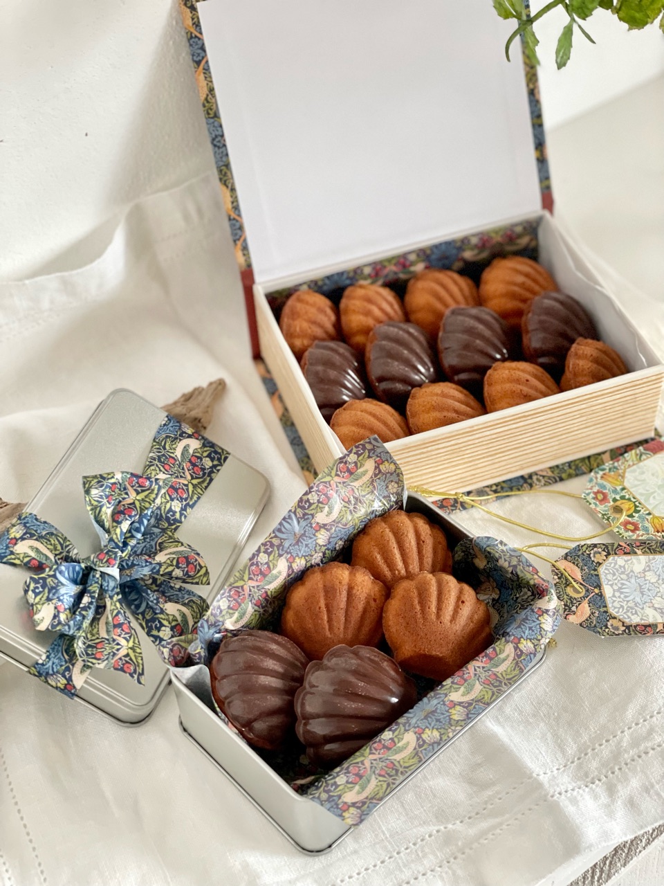 Seriaで買ってあったウィリムモリスシリーズの箱やリボン、ペーパーが役に立ちました✨