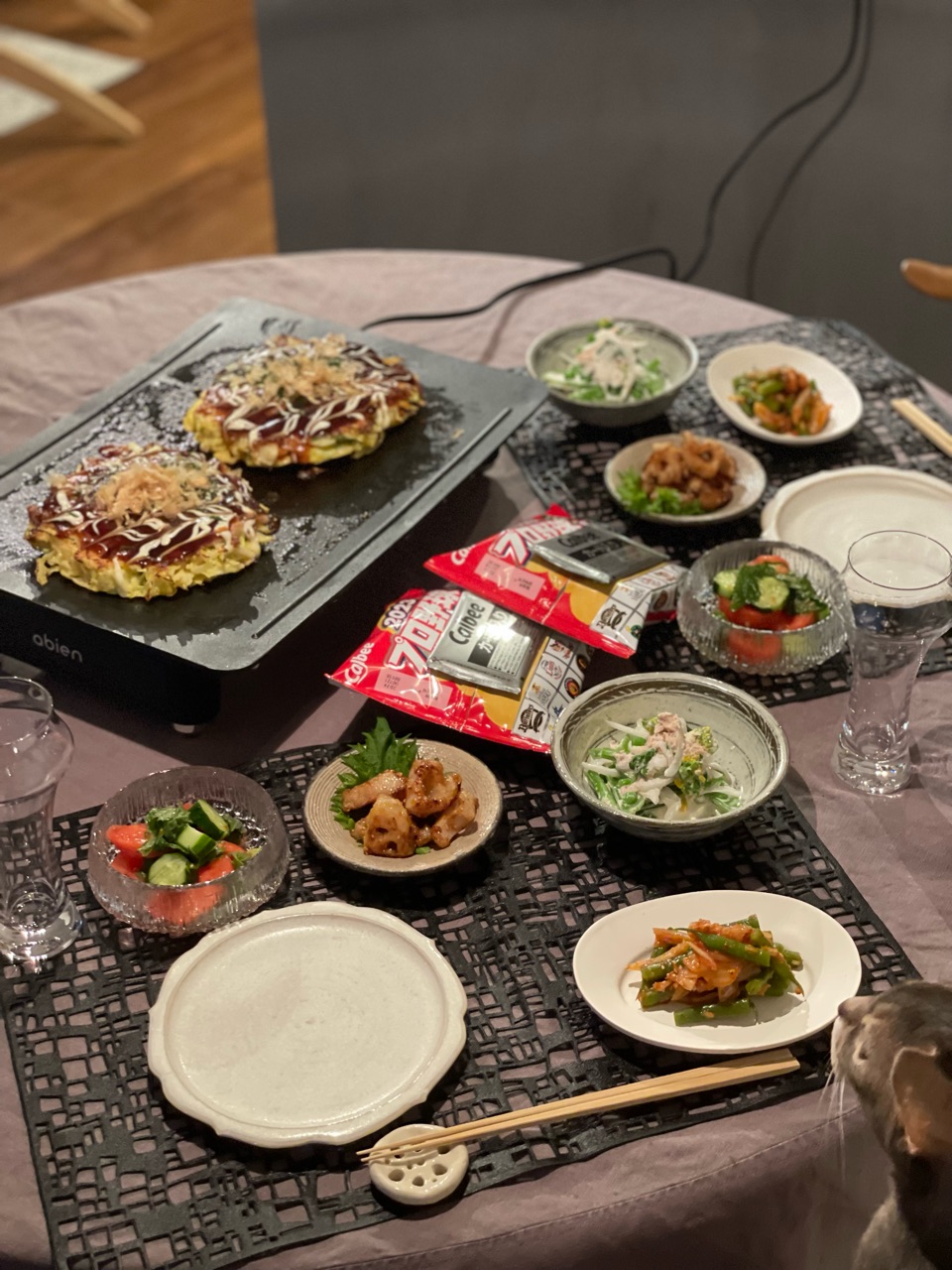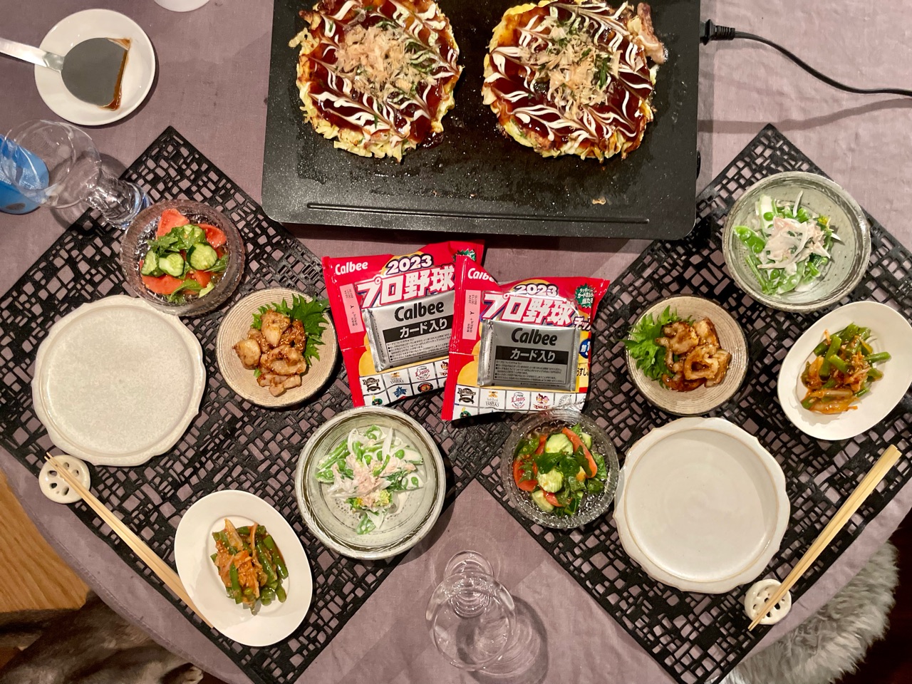 横浜は阪神との戦いということで、夜ごはんはお好み焼きにしました♪