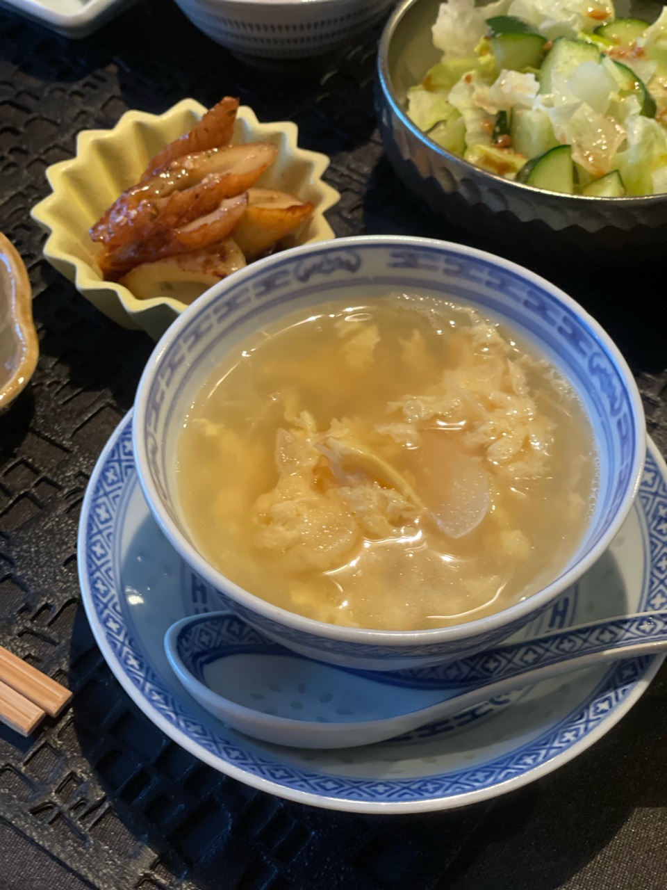 卵スープと、奥にチラ見えのサラダ。