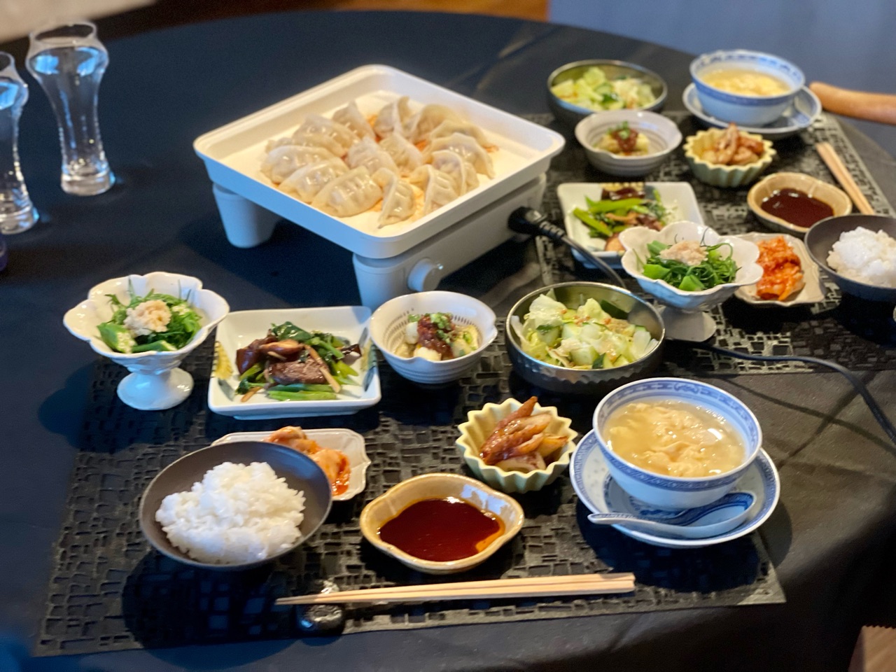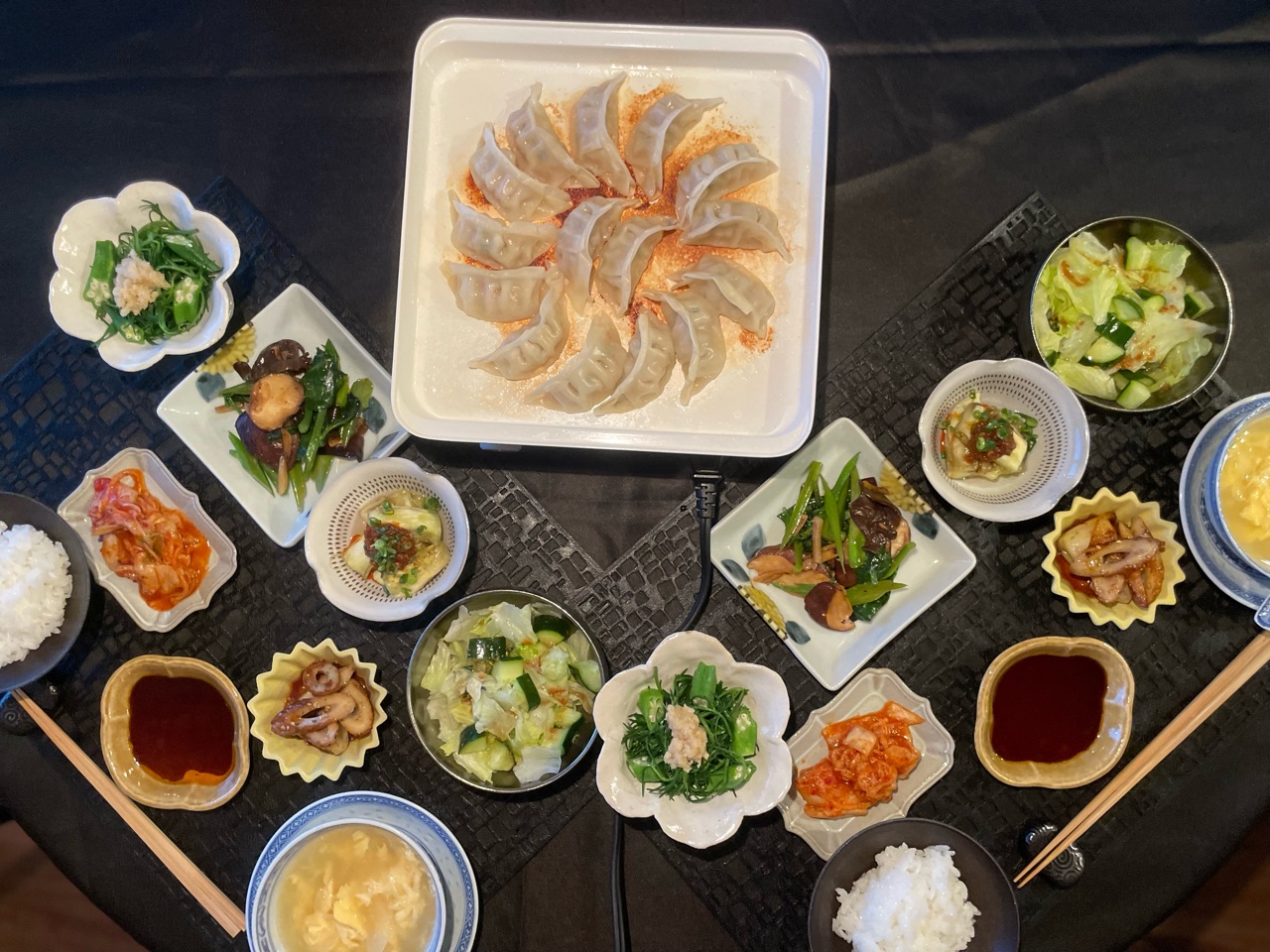 餃子の食卓もおかずいっぱいで旅館のよう🎵