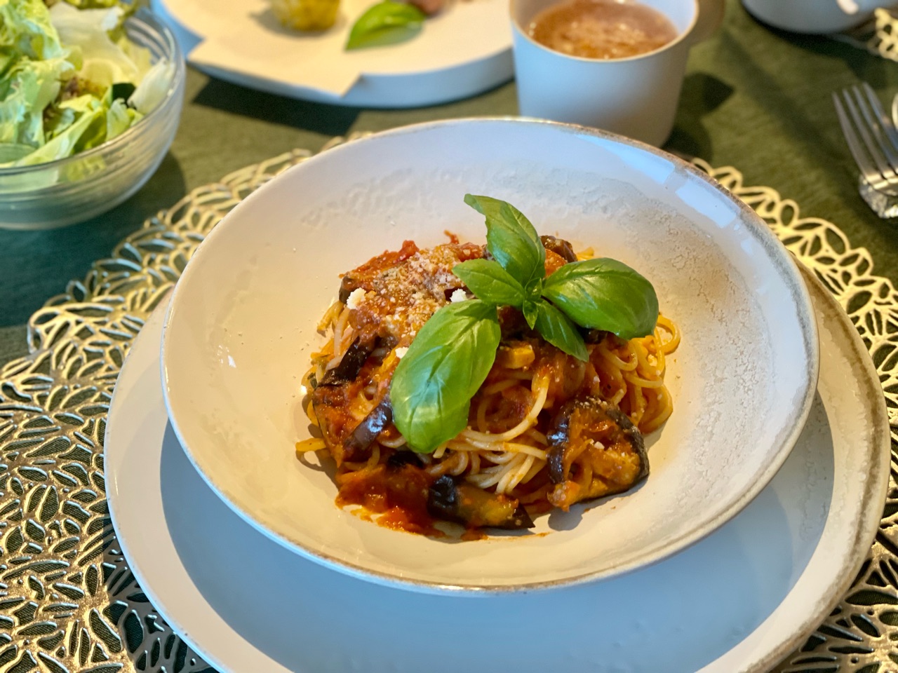 茄子とウインナーのトマトソースも美味しかったー✨