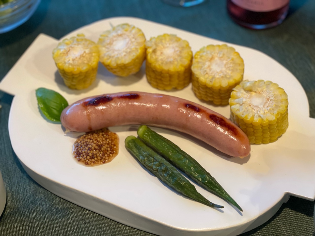 長野で買ってきた、ツルヤさんのでっかいソーセージと、原村のとうもろこし。