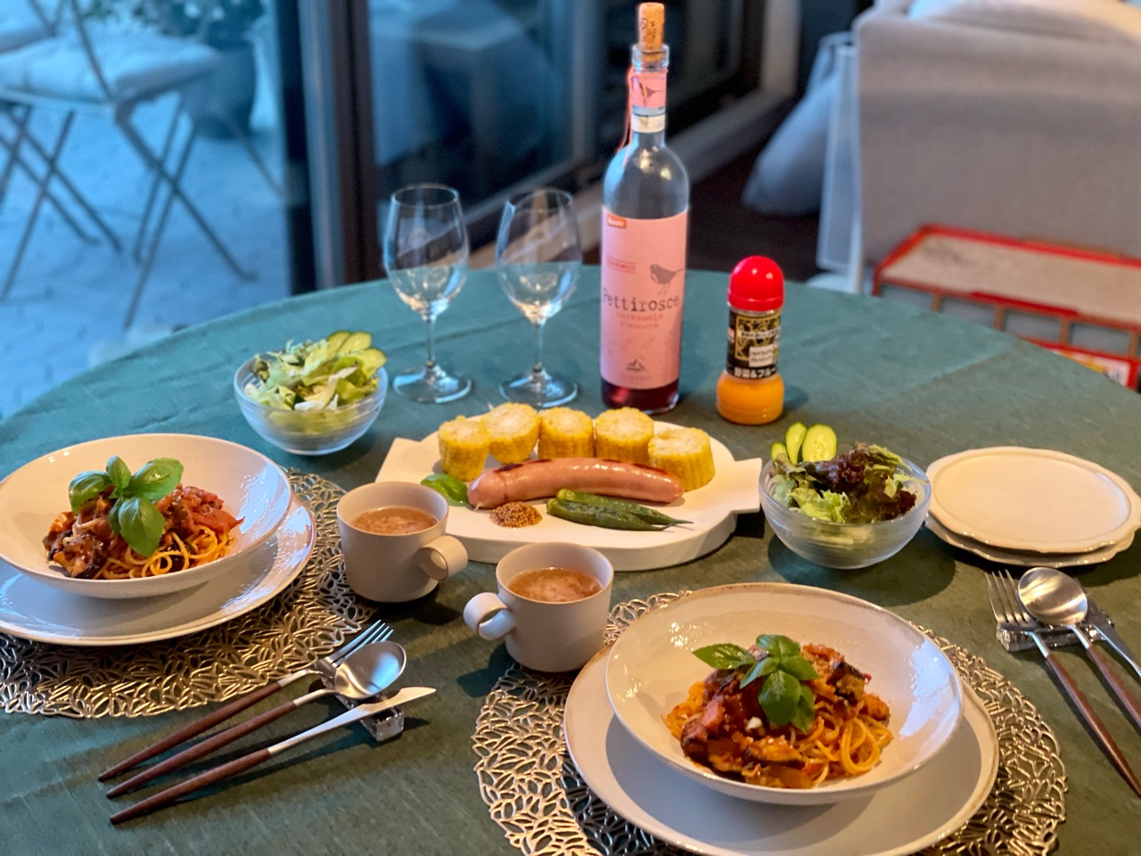 昨日は自家製トマトソースを使ったパスタの夜ごはん。