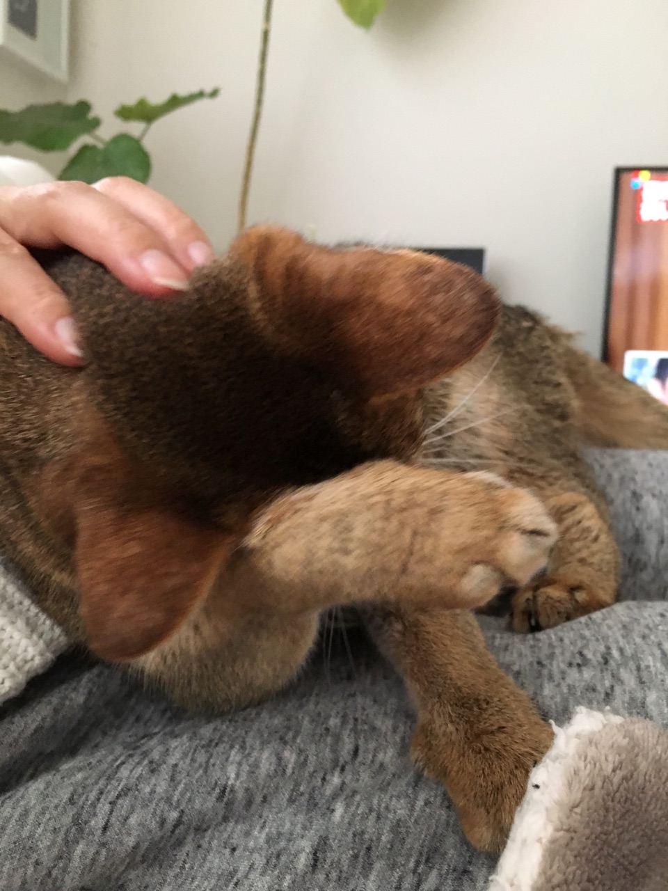 香箱の手に指を突っ込むと、