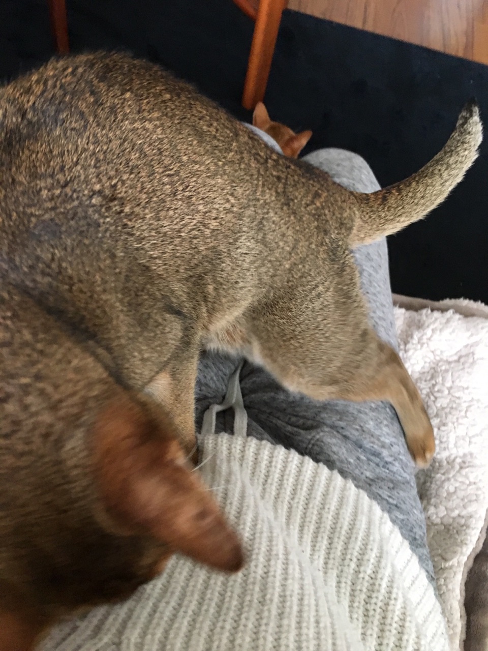 \りすちゃん、お膝でひっくり返るのも好きかなぁ?/