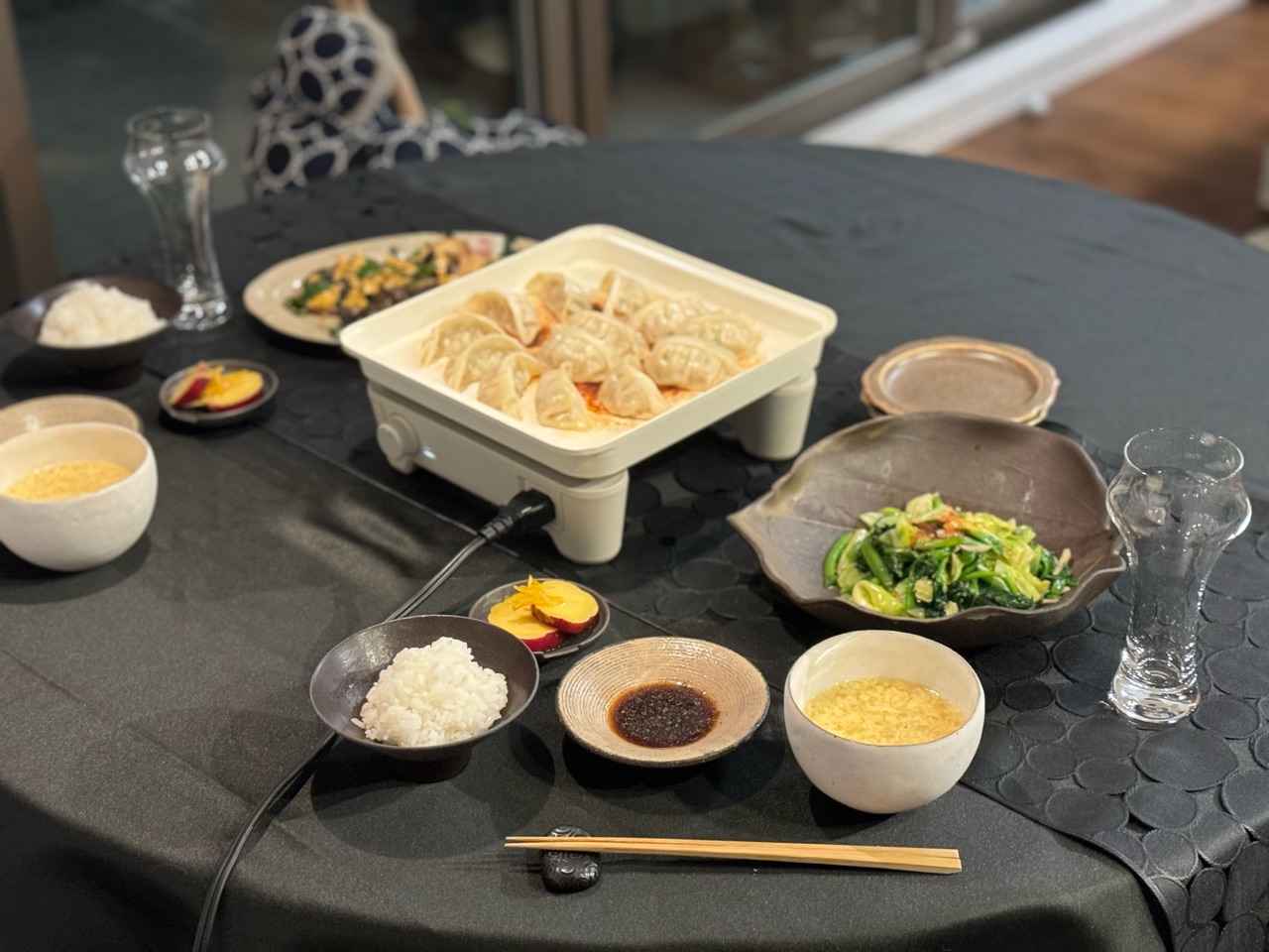 じょりじょりは、餃子を並べて、スープの卵を溶いただけ(๑¯◡¯๑)