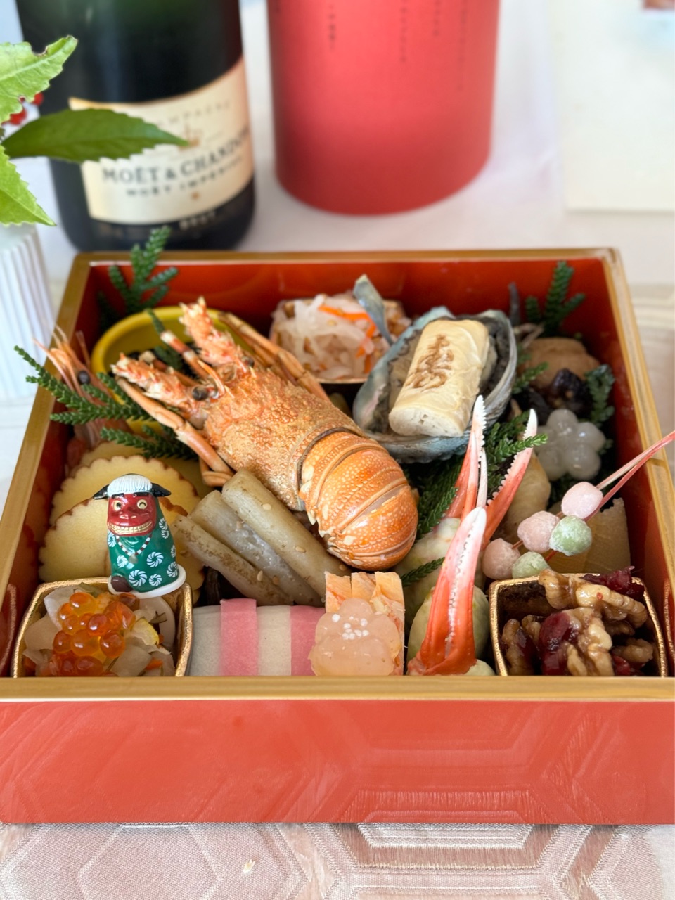 毎年、京都に住むお友達が我が家の分も受け取ってを送ってくれるので、このおいしいおせちを食べられます。
