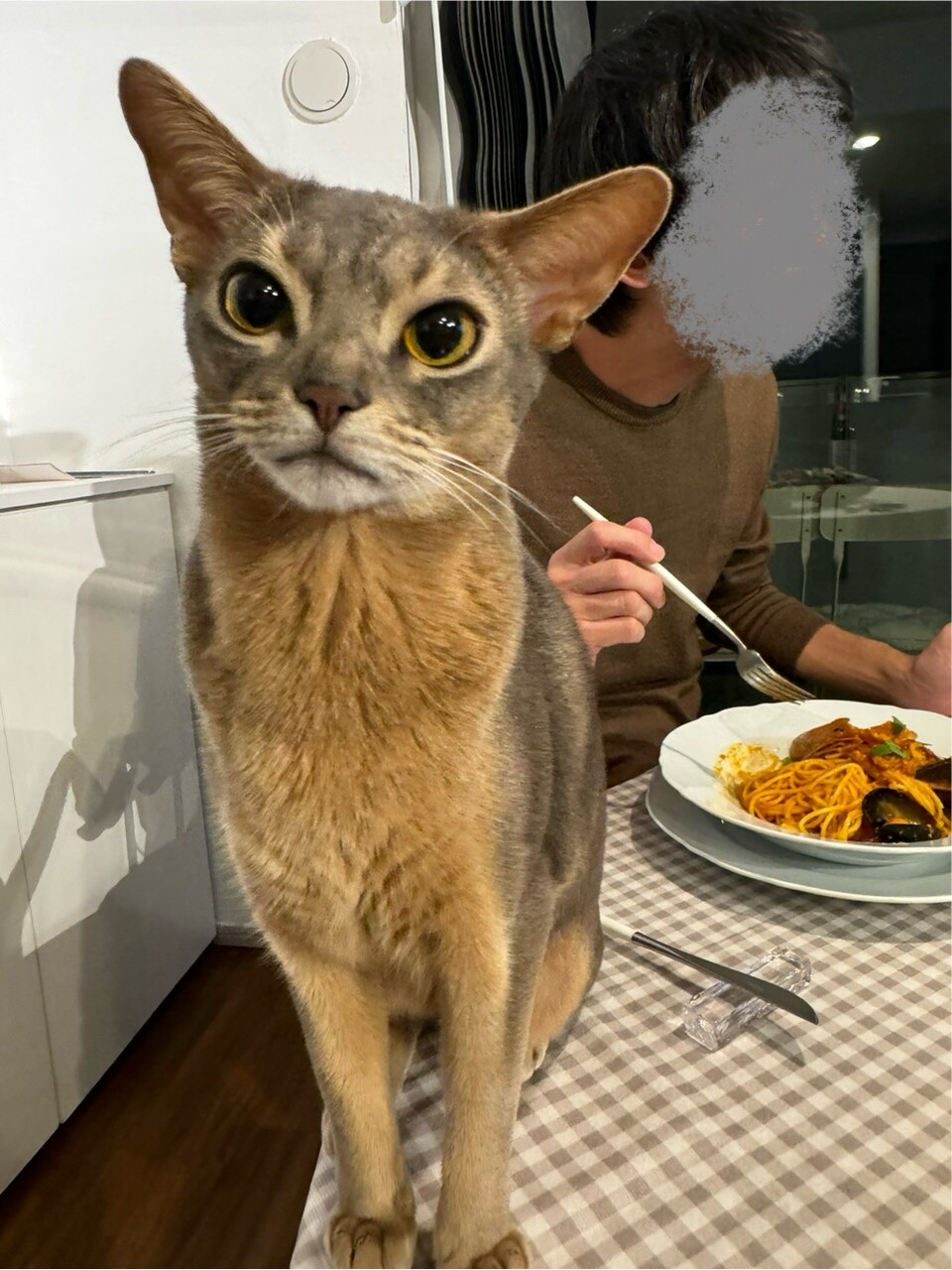 食卓魔神ですね。姿勢良くして…。