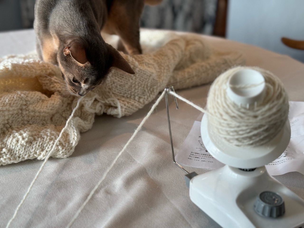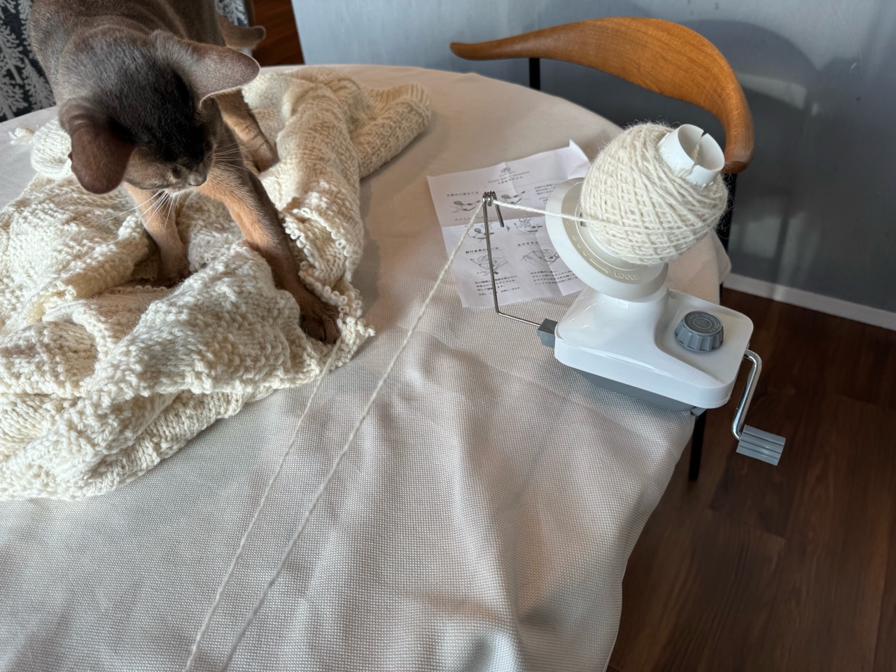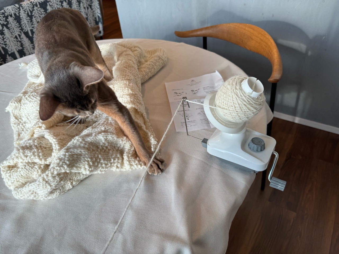 毛糸巻き機、どこかで見たような…。