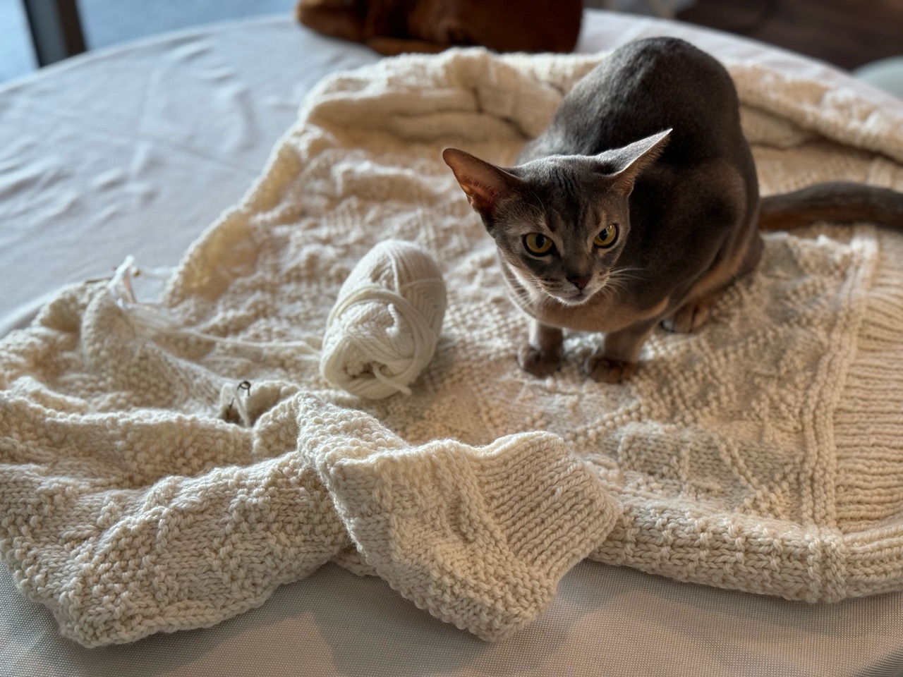 数年前に編みかけた、だんなさまのセーター。
