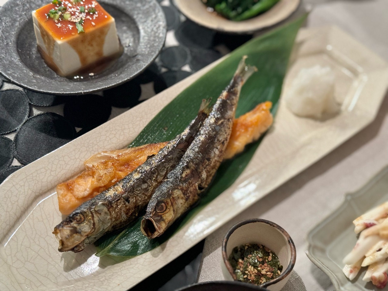 今夜は、冷凍してあったヨリドコロさんのイワシの干物と、ハラス。