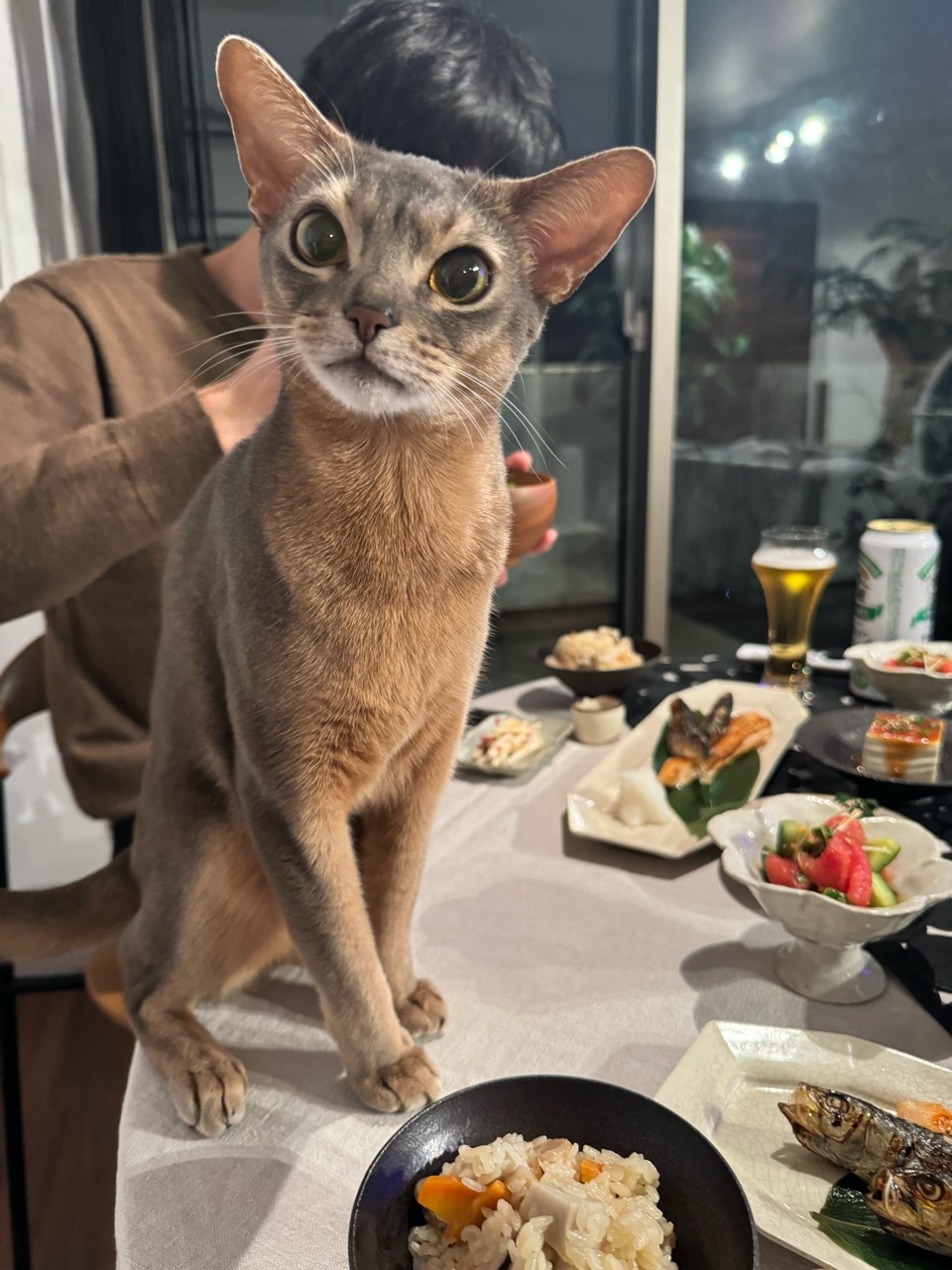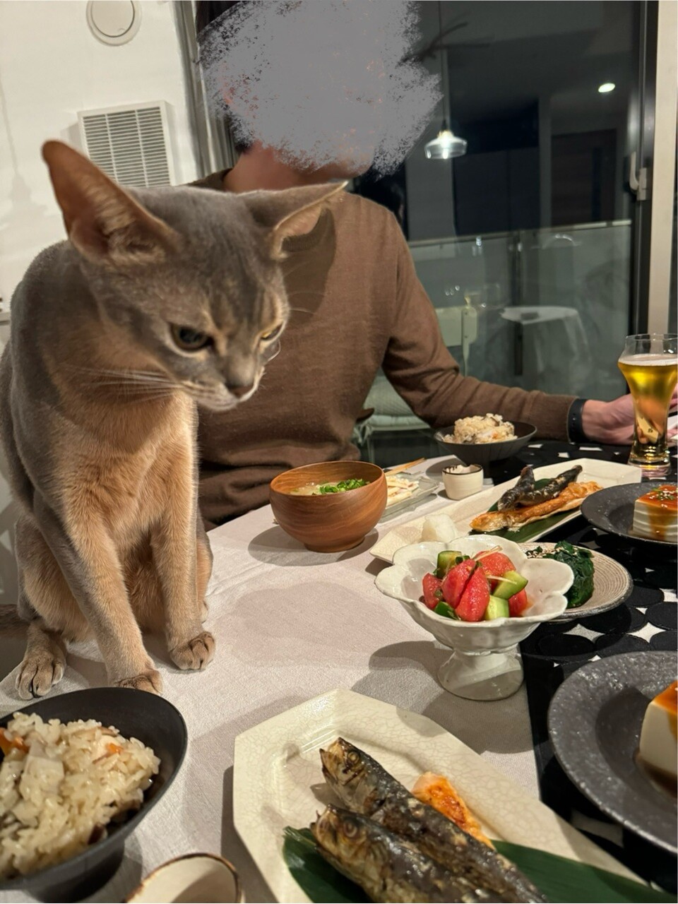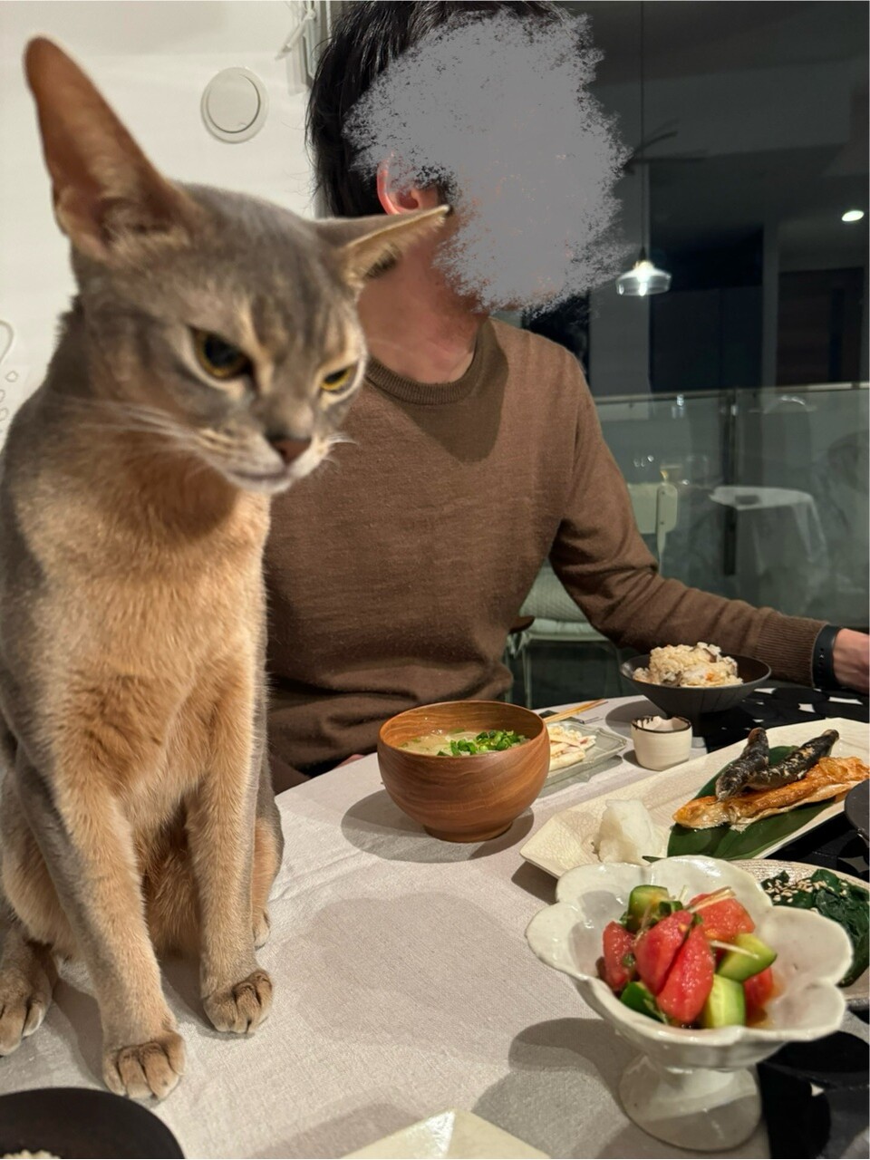 ぼくちんは食卓魔神じゃなくて、「食卓に現れる甘え魔神」になることにしたのかな🥰