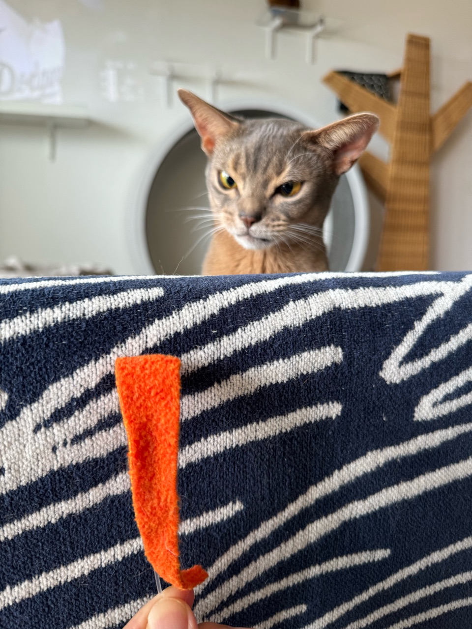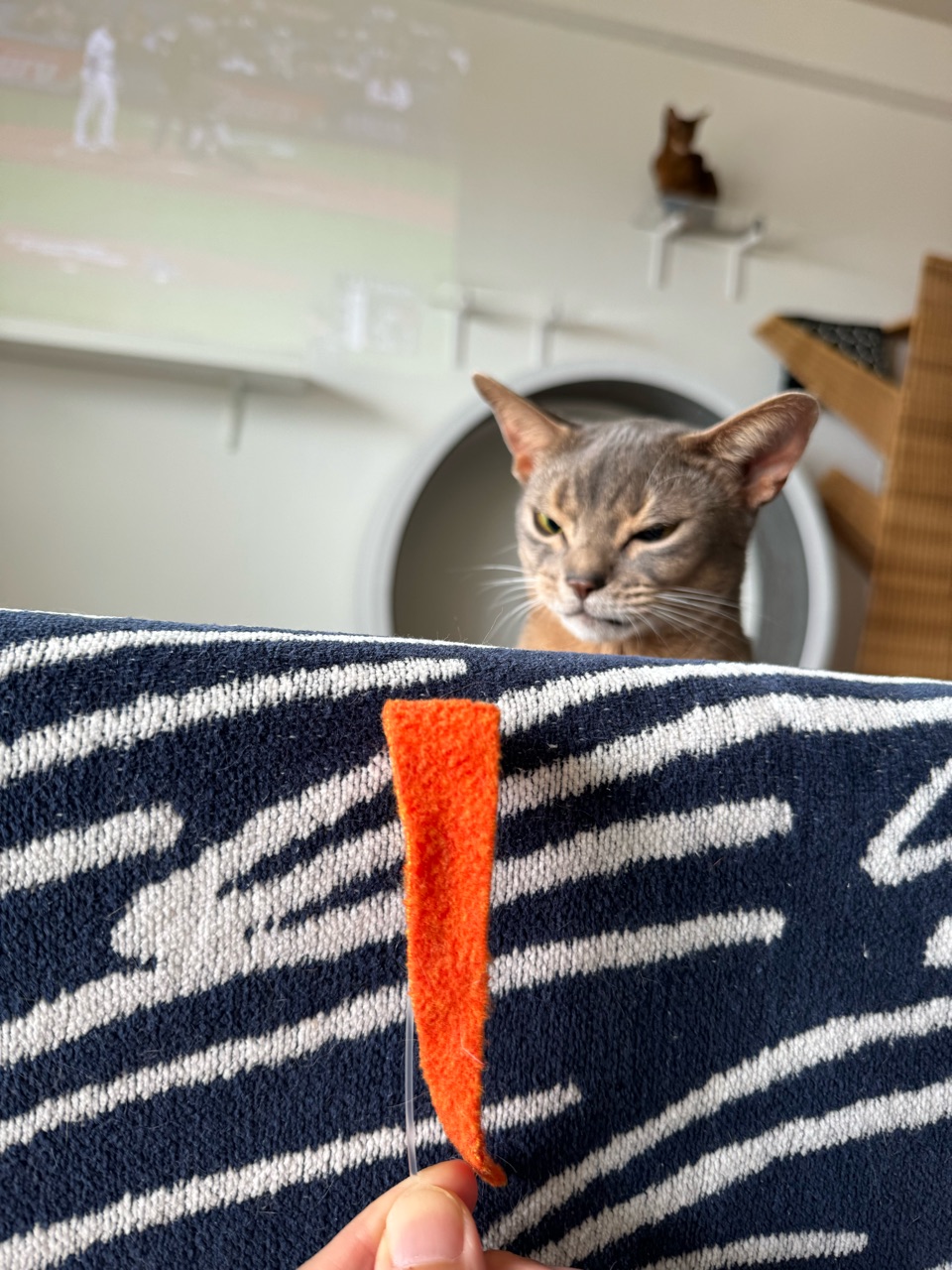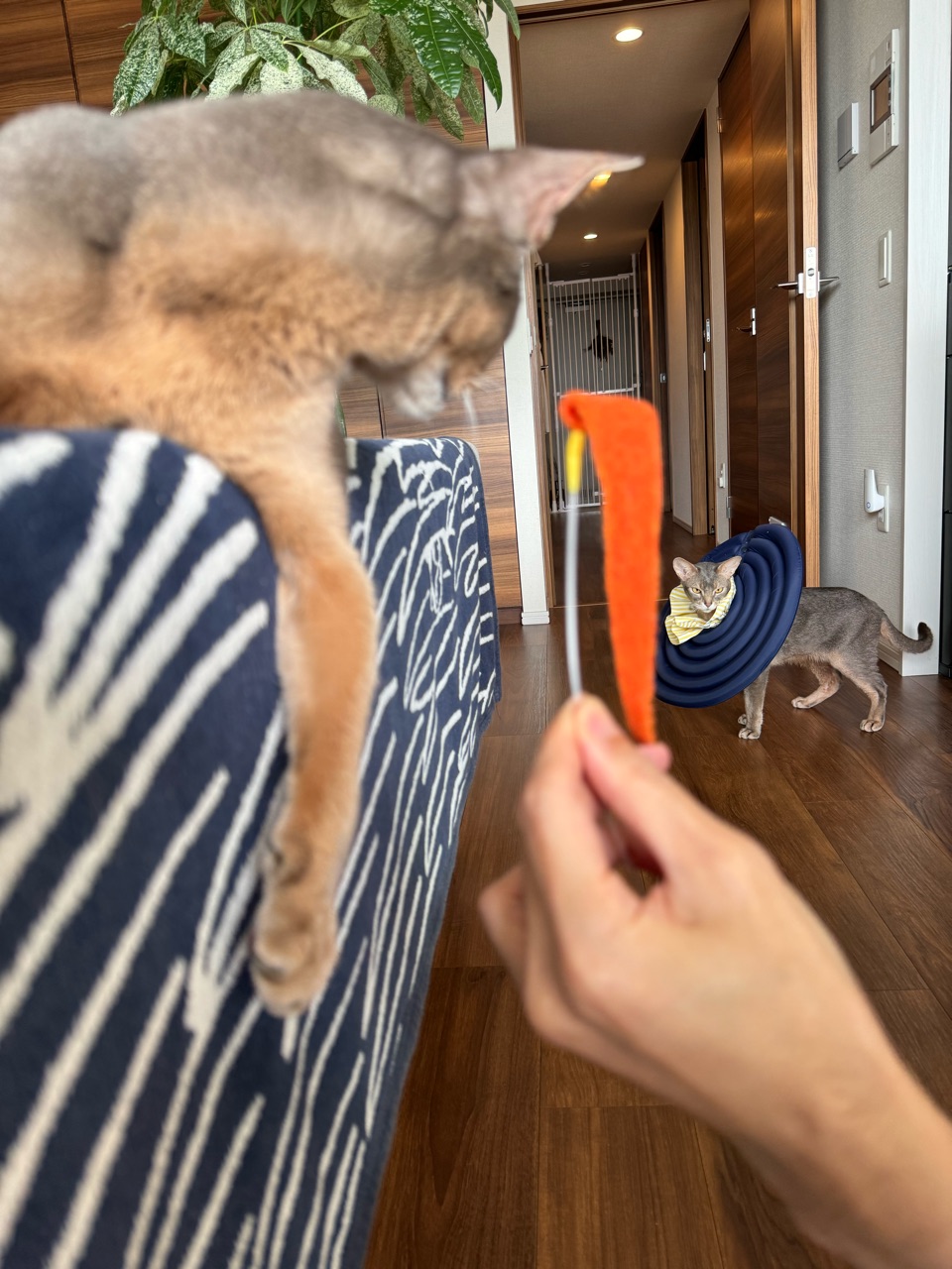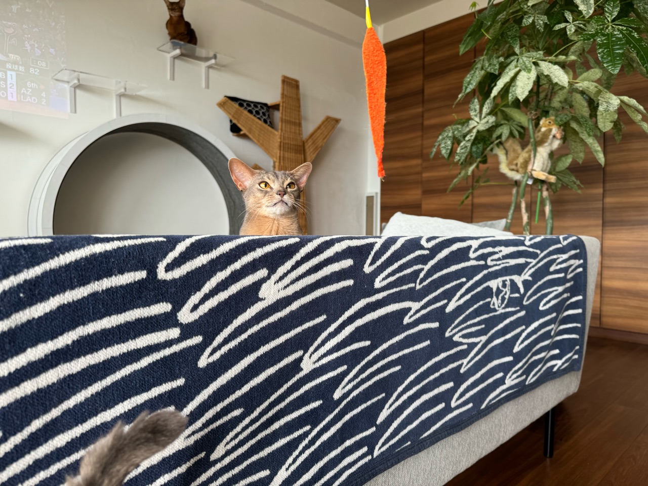 遊びたい時は、オモチャがある扉をジャンプして蹴ってアピールします。