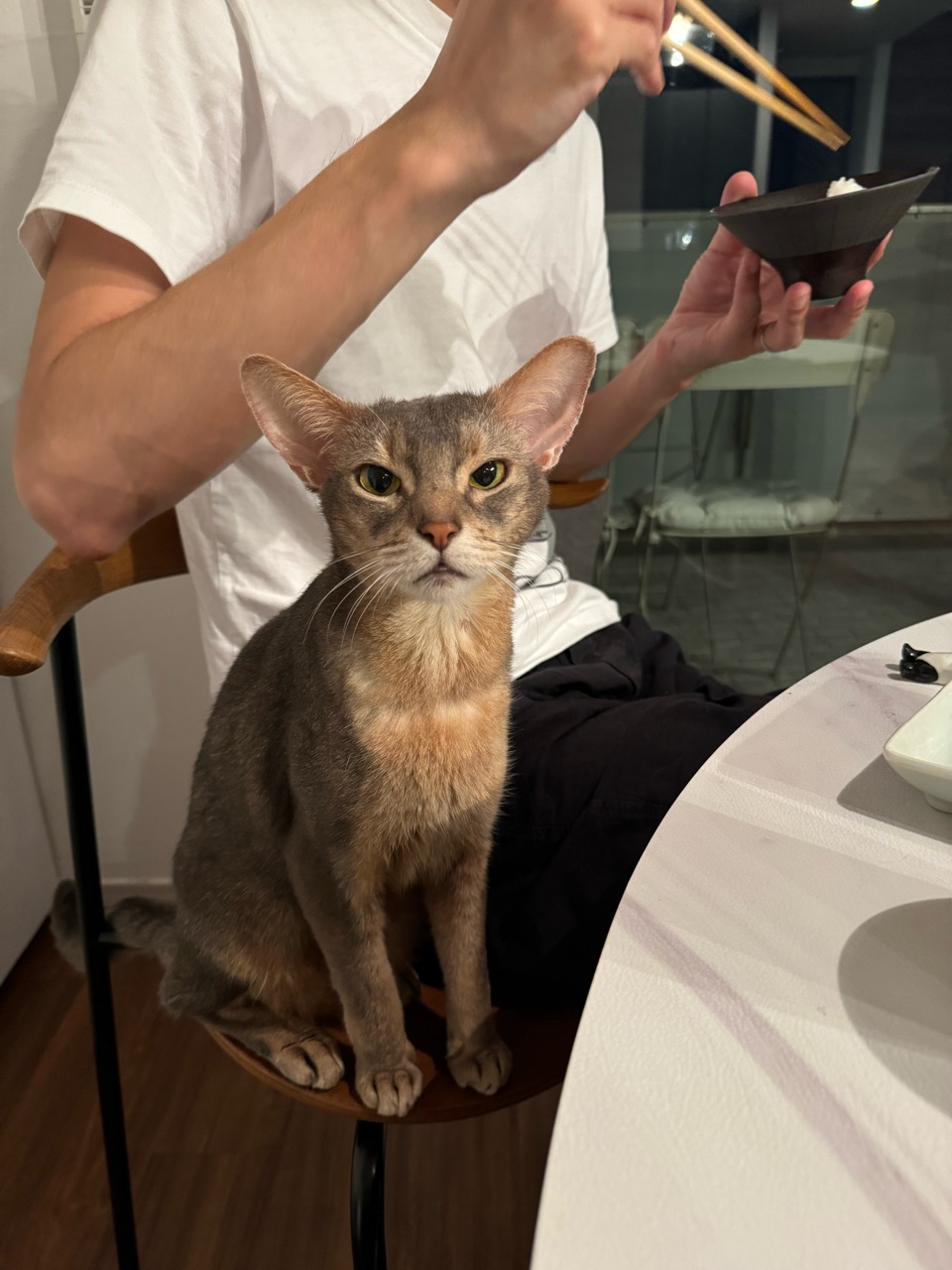 \ぼく、パパと一瞬に座ってるよ/